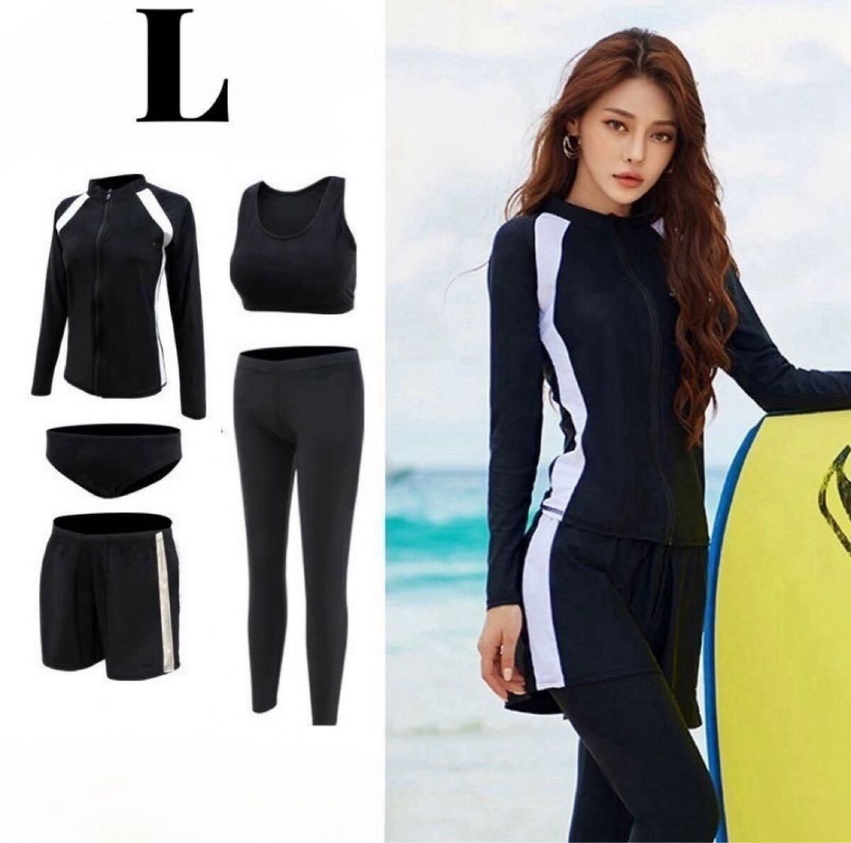 スポーティーなオシャレさ抜群ラッシュガード付き水着5点セット!