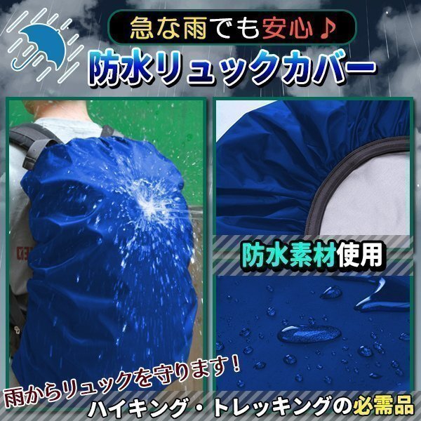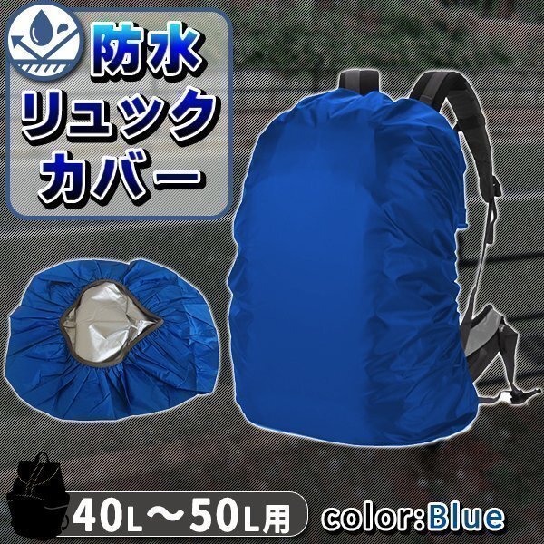 ★防水 リュックカバー 40~50リットル用 40L 45L 50L ザックカバー レインカバー ゴム ブルー ブラック 青 黒 登山 通勤 通学 青 ブルー