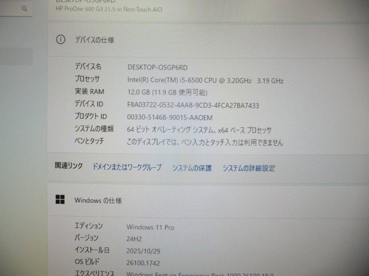 | (1597) 秒速起動SSD254GB HP Pro one 600 G3 21.5 AiO core i5-6500 3.2GHzメモリ12GB Windows11Pro 64bitです(動作品.自称美品) | |