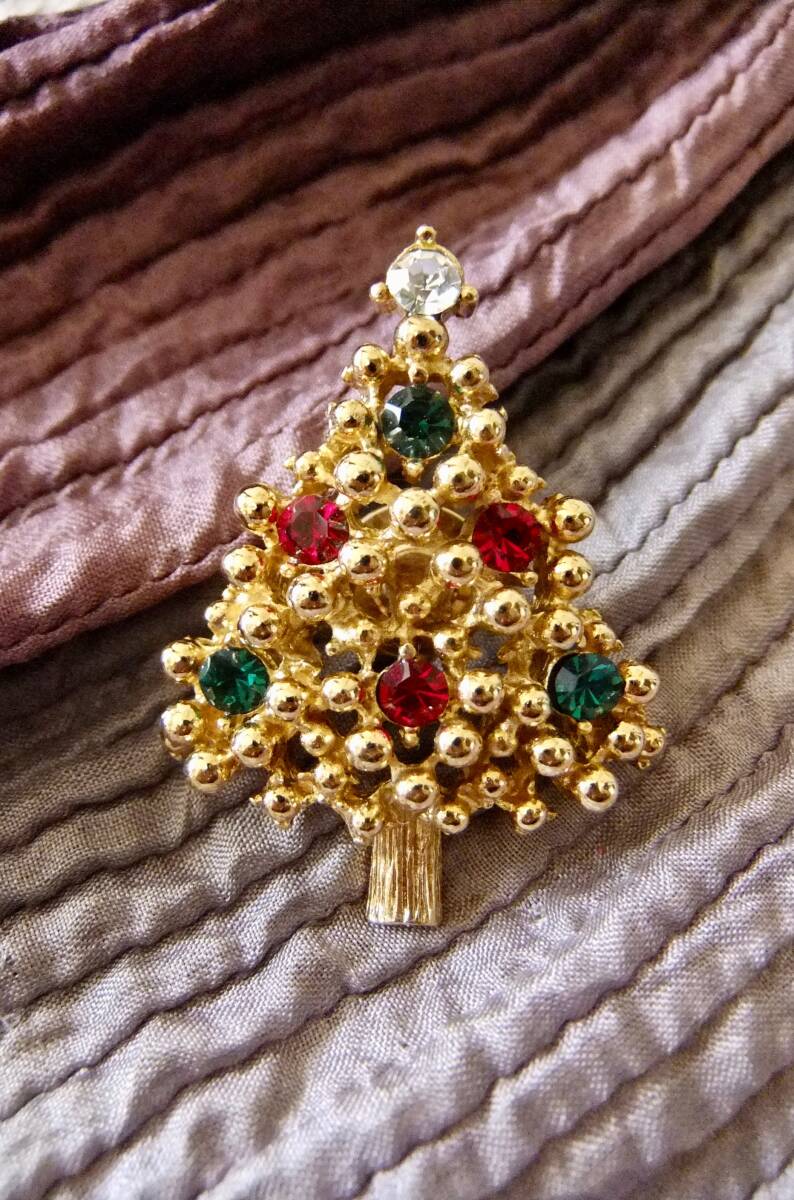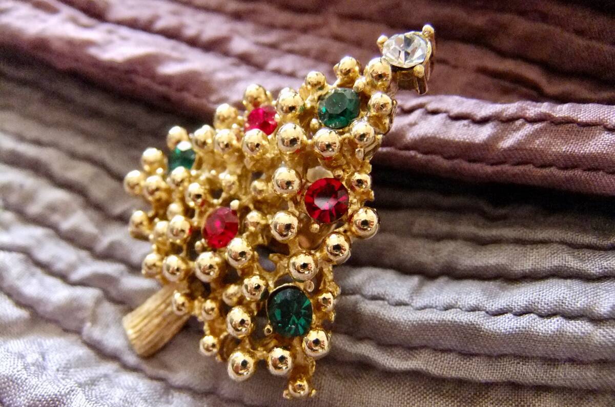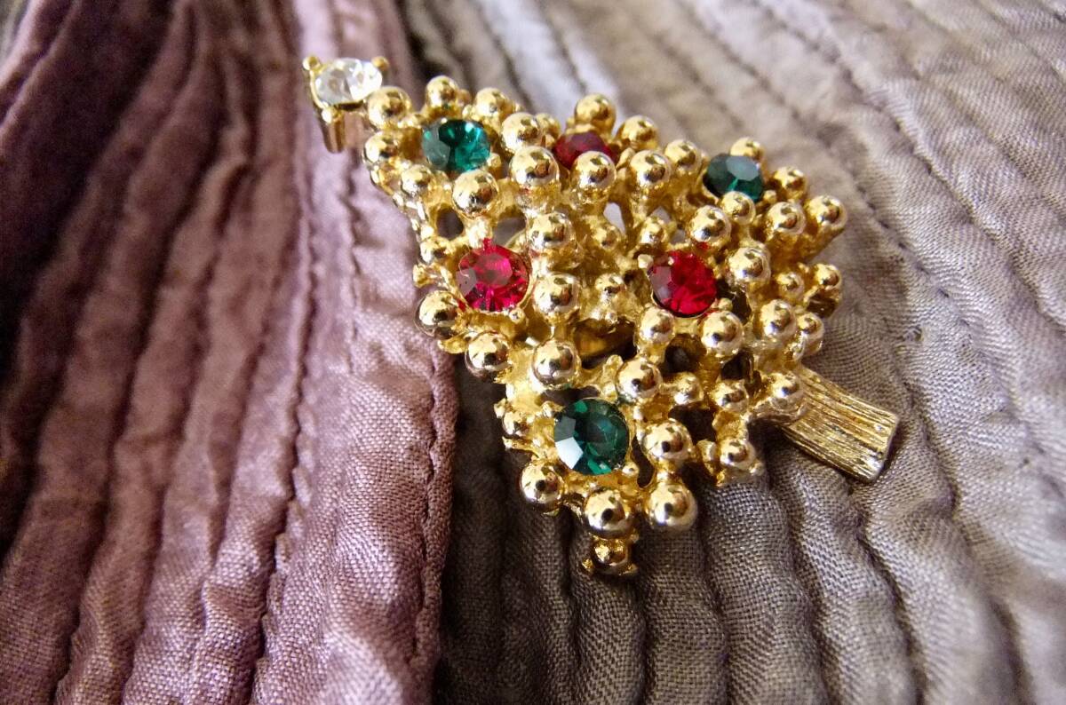 3色カラーストーン、クリスマスツリーのタックピン 3-7