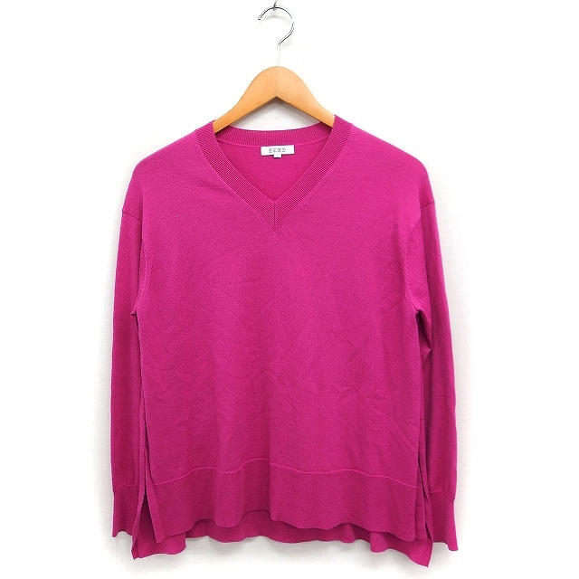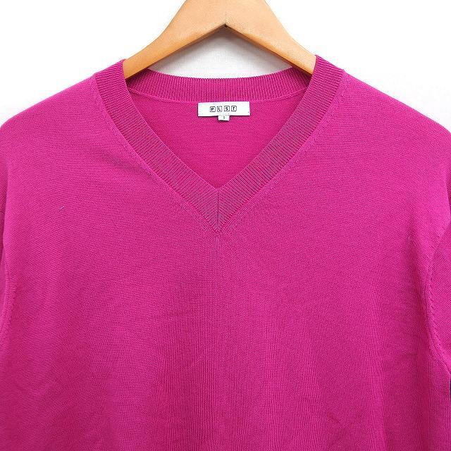 プラステ PLST Vネック ニット セーター 長袖 無地 ウール ハイゲージ S ショッキングピンク /FT47 レディース