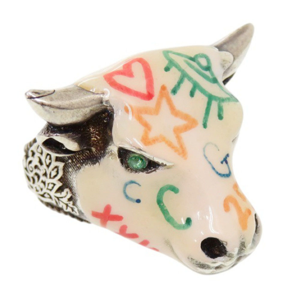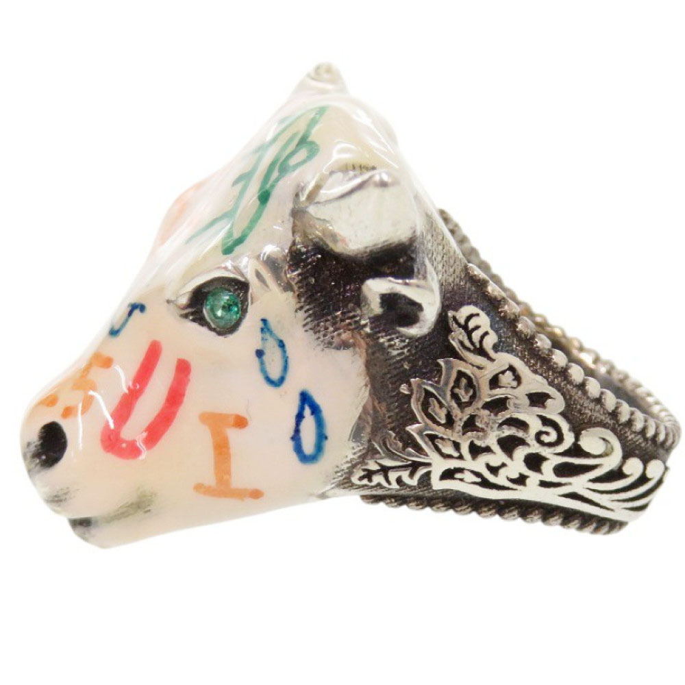 美品 グッチ ANGER FOREST 牛 シルバー925 #12 マルチカラー リング 指輪 1301 GUCCI