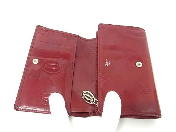 Cartier カルティエ ハッピーバースデー パテントレザー 二つ折り 財布 ウォレット レディース ボルドー系 DK7132