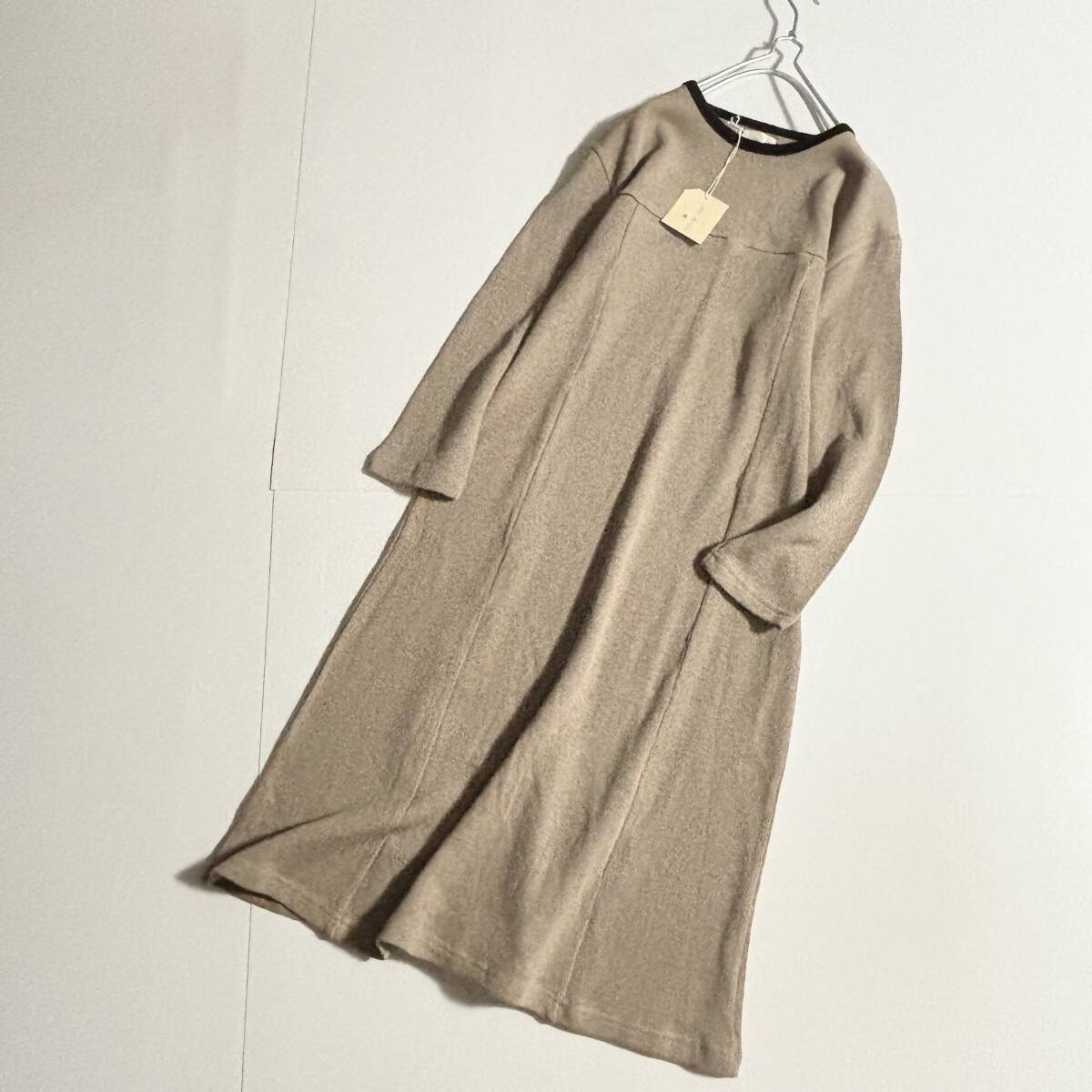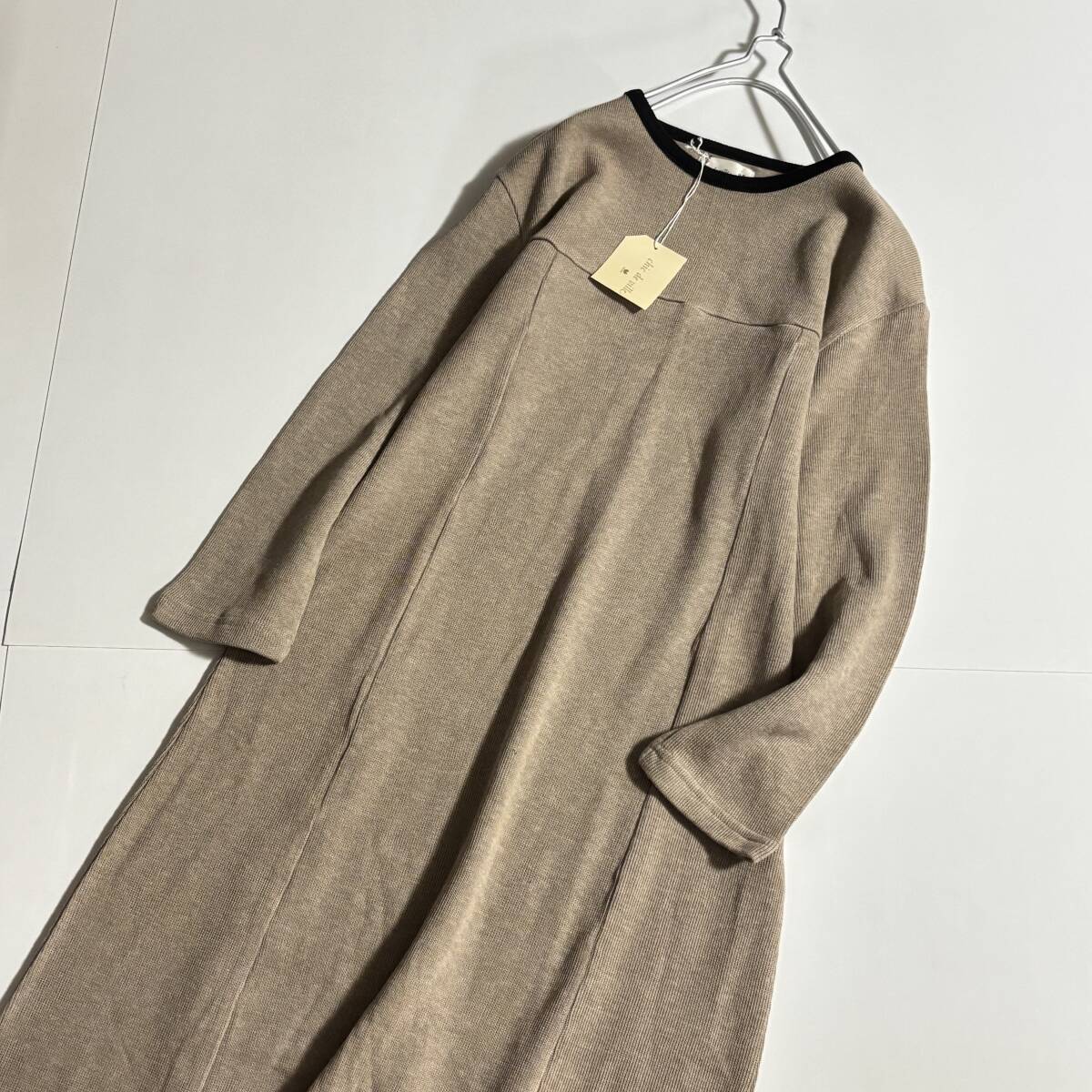 新 Wacoal ワコール chic de ville シックドビル サイズM // コットン100 ベージュ系プレーン ニットワンピース ⑥
