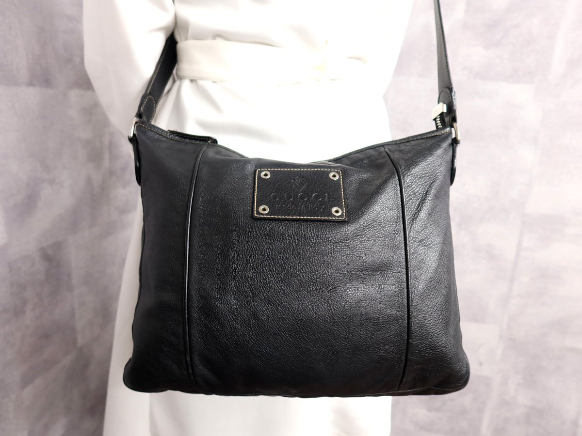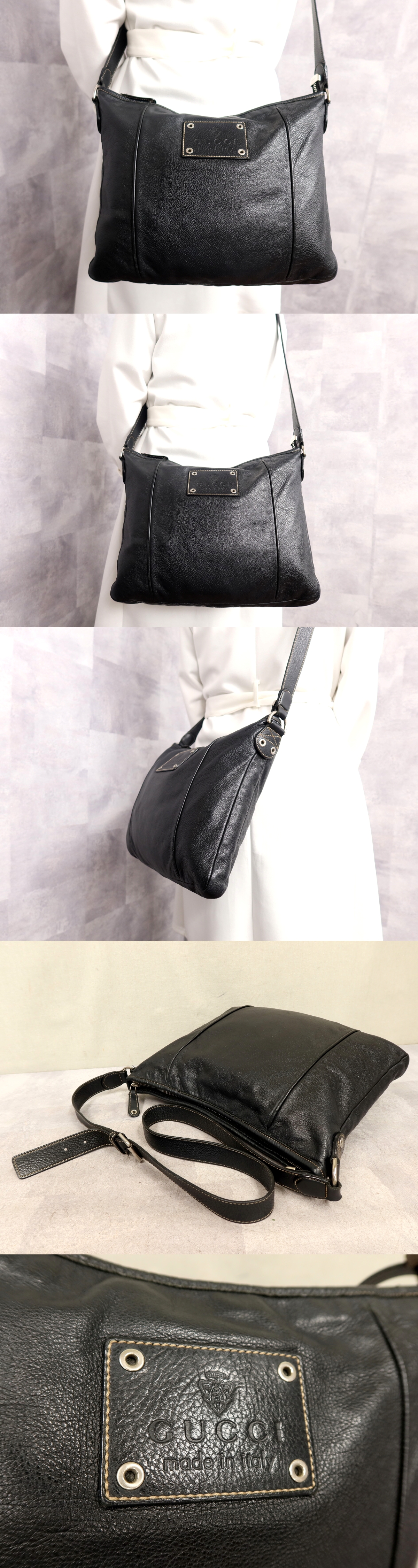 ●超美品●GUCCI グッチ●メンズ●クレスト●カーフ レザー 本革●ショルダー バッグ●黒●イタリア製●斜め掛け●B5 収納 かばん●Js61988