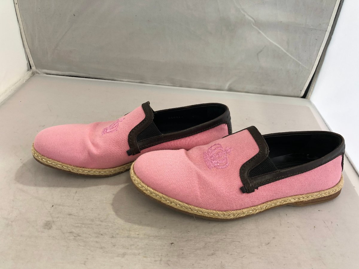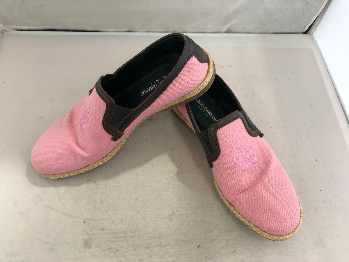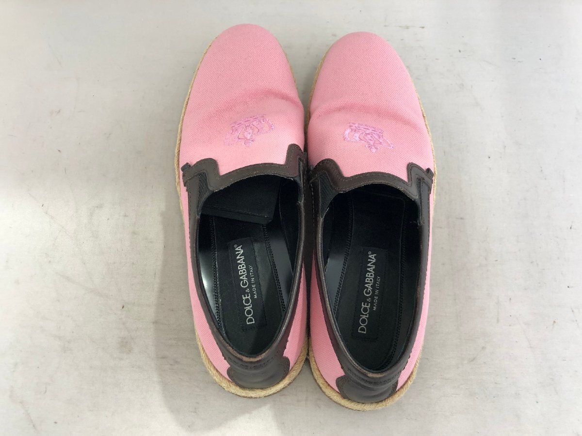 ▼最終価格▼ 【DOLCE & GABBANA】 ドルチェ&ガッバーナ スリッポン ピンク×ブラウン系カラー キャンバス×レザー 靴 SY02-GZ3▼