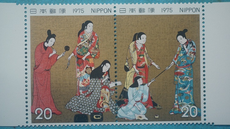 切手趣味週間   松浦びょうぶ    1975年2枚連刷ペア