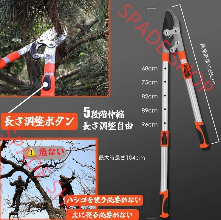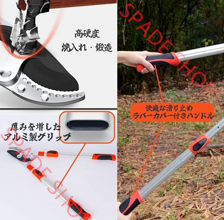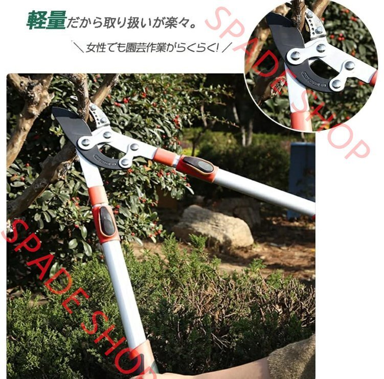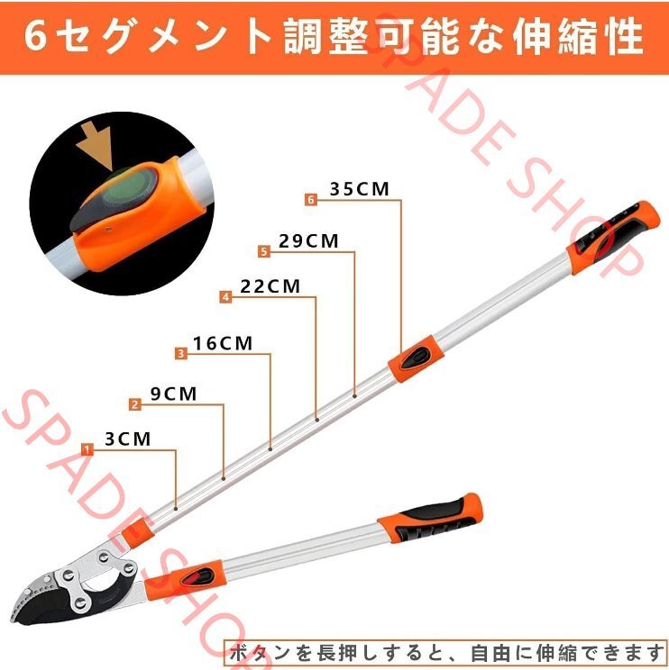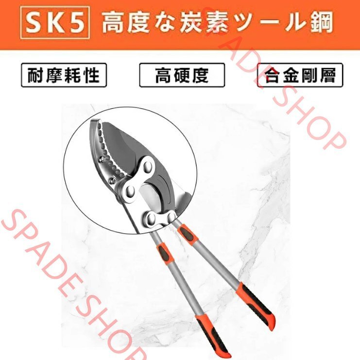 | 【高品質のスチール製】 高炭素SK5鋼で作られた高品質のブレードで、折れにくいです。ブレードは錆びにくいテフロン防錆コーティングを施し、通常のスプリングよりも長寿命で高品質同心スプリングを採用しています。 使用の安全性、人間工学および環境へのやさしさに関する基準のすべてに適合した林業用品です。 【伸縮式アルミハンドル】 最大切断径55mm、全長:69-103cm、重さ1.6kg。伸縮式剪定ロッパーは、69~103cm調整することができる伸縮ロッドで設計されており、手元操作で簡単に伸縮できます。6段階伸縮式安全リリースロ ックボタンで、このセットはさまざまなニーズを満たすことができ、時間の節約と効率的な作業が可能です。高品質なガーデンツールはより良い庭を作るために設計されています。 【スペアブレードで切断寿命が延びる】 刃の置き換えが可能で経済的です。SK5炭素鋼の刃は超強力で、普通の刃より鋭く、さらに長持ちします! 数回切っただけで鈍くなる心配する必要はありません。 【アルミ柄】 厚みを増したアルミ製ハンドルデザイン、ハンドルのゴム引きグリップは快適性とグリップ性に優れています。このロッパーを使用すると、強度とレバレッジが向上し、手足の周りを効率的に移動できます。 【園芸ロッパーは広い剪定を行います】 園芸ロッパーは、枝や低木の切断や剪定を行います。果樹の剪定、鉢植えの剪定、造園、太い小枝、バラや茂みの剪定に適した園芸ロッパーセットで、あらゆる重労働の剪定作業を簡単にします。 |