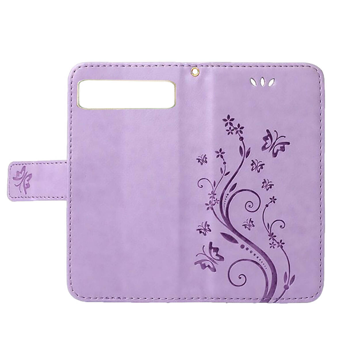 蝶と花が型押しされた 大人可愛い 手帳型スマホケース! デザインは印刷ではなく型打ちのため、イラストが薄くなりません!