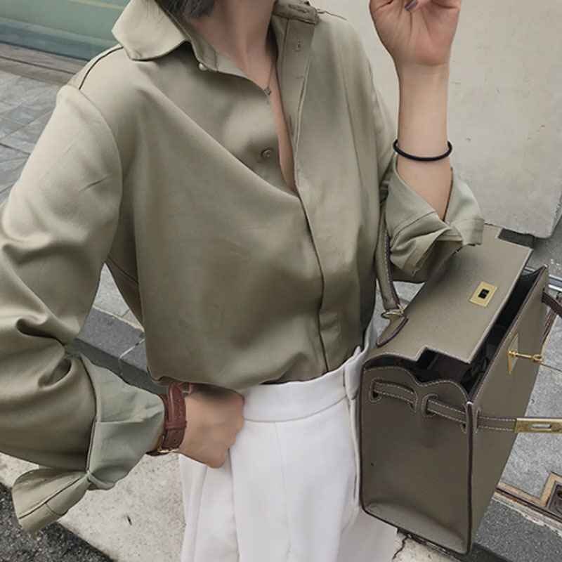 全体的にシンプルなデザイン、サラサラした肌触り、シャツの一番上のボタンにパールが付いているのがポイントです。