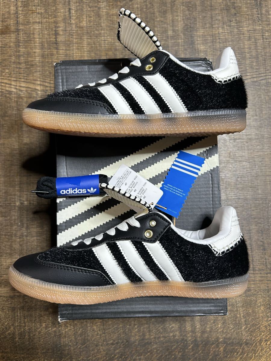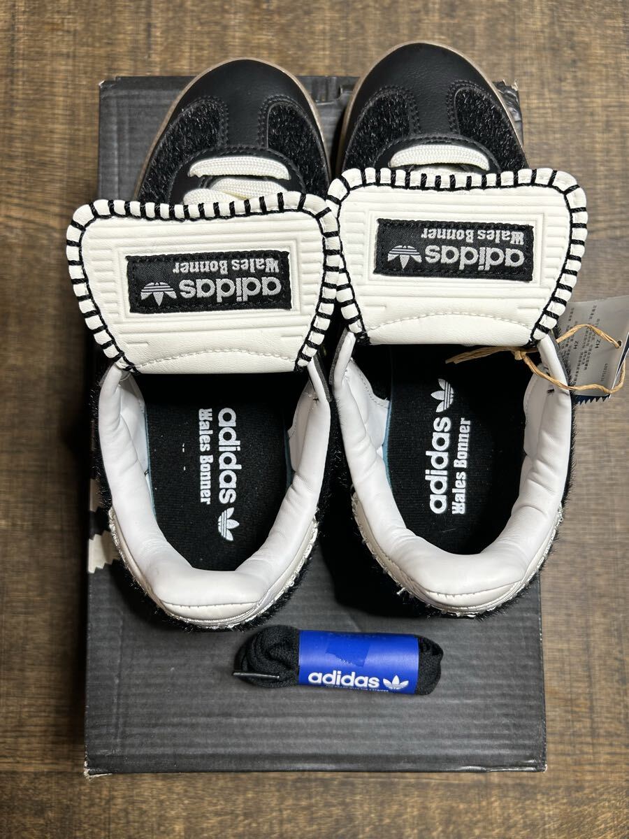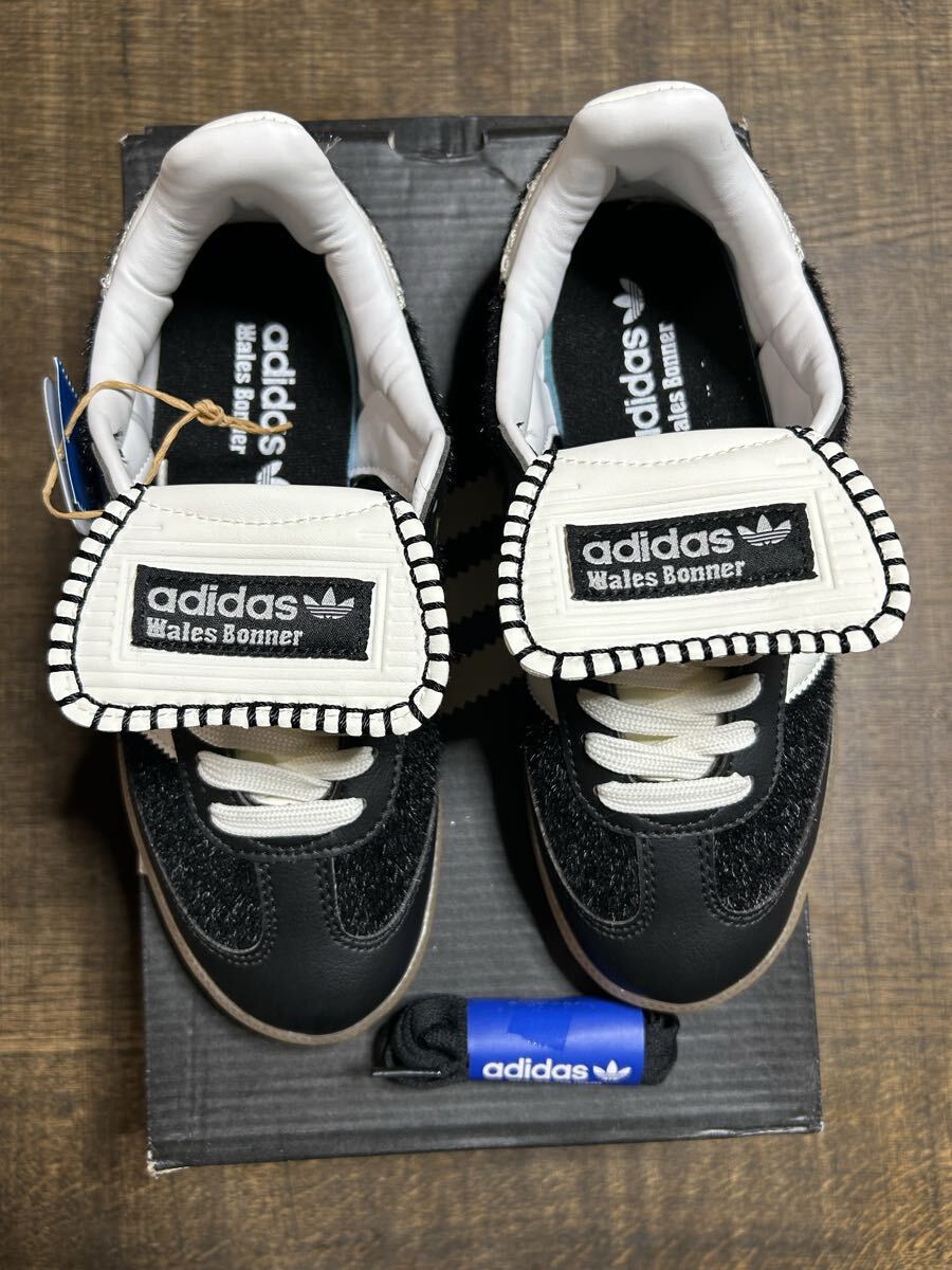とてもレアな未使用新品の『adidas Wales Bonner』です。サイズは23.0cmでブラックのアッパーにホワイトのタンと三本線が入っています。箱もあります。