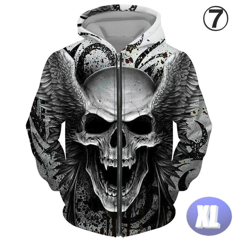 フード付き ドクロパーカー ジップアップ カラー7 XL トレーナー アウター 防寒 n717