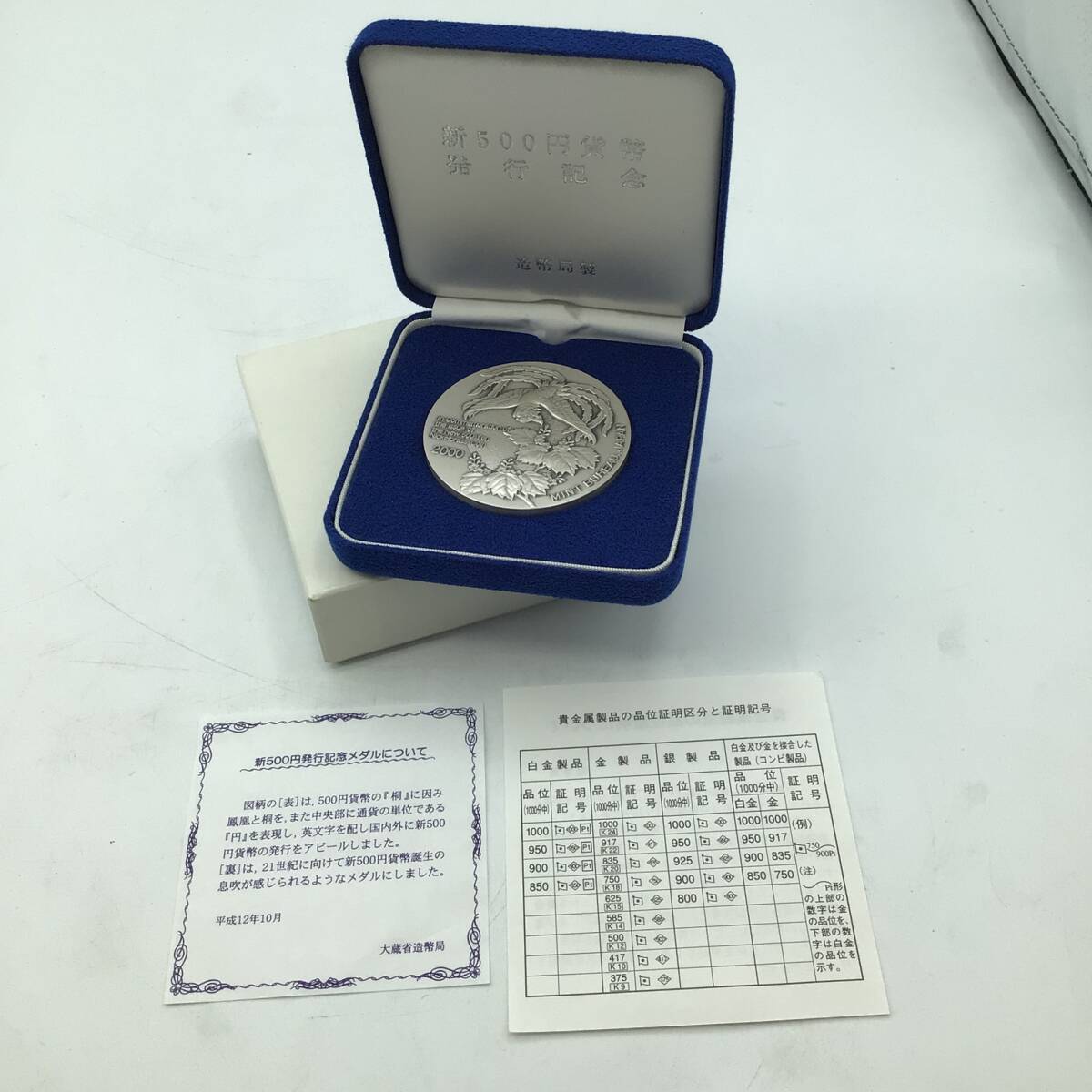 M5291 新500円貨幣発行記念 メダル SILVER1000 純銀 約133.6g 平成十二年 鳳凰 2000 銀製 記念メダル コレクション