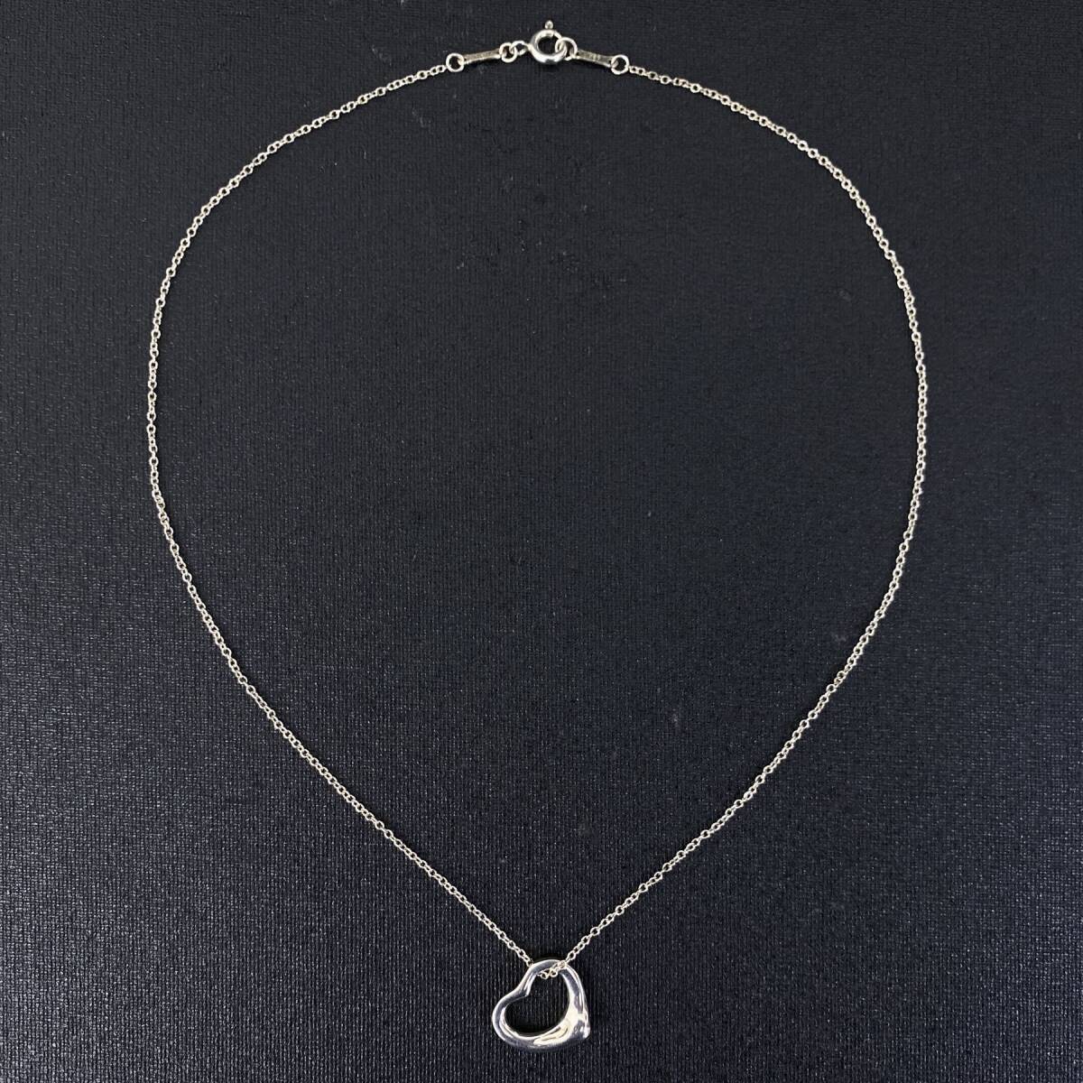 TIFFANY&Co ティファニー OLD オールド Elsa Peretti シルバー925 オープン ハート リング ペンダントトップ チャーム チェーン ネックレス