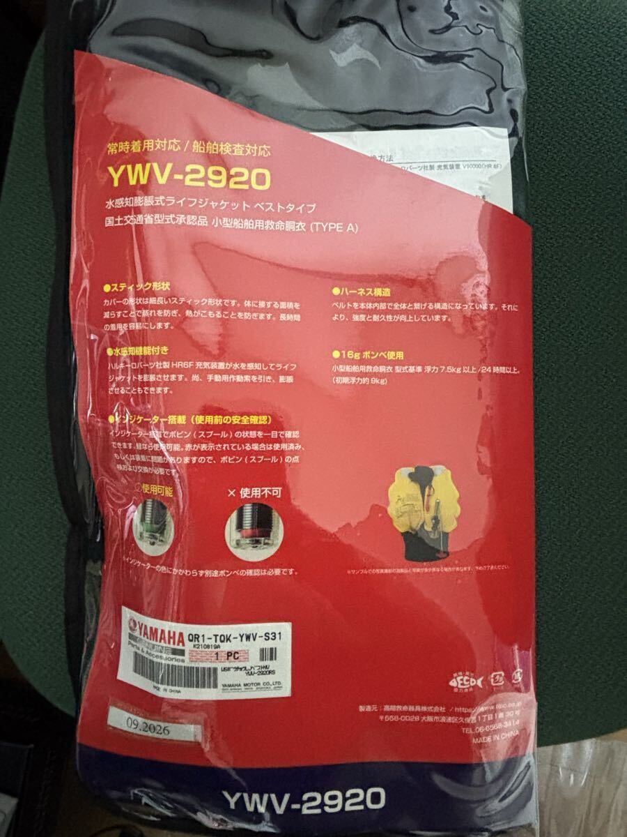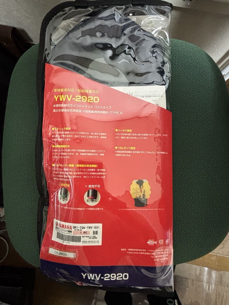 未使用品★ヤマハ★水感知膨張式ライフジャケット★ベストタイプ★TYPE A★YRV-2920★送料無料