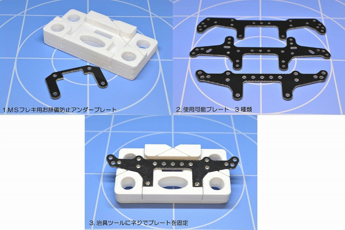 【送料無料】MSフレキ製作用加工セット治具 センター用(1個)とフロント・リア用(1個)とアンダープレート用(1個) ミニ四駆用