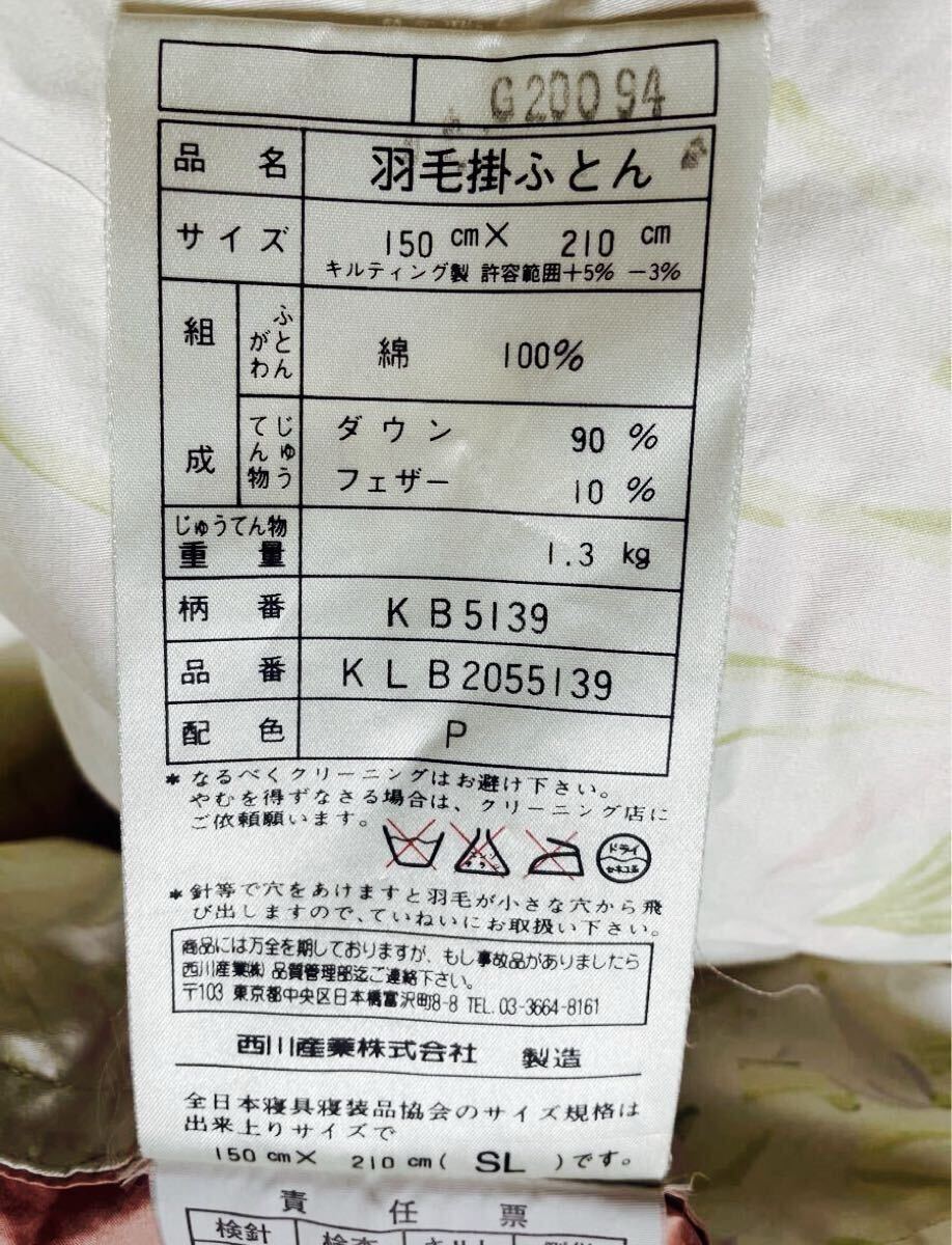 ・品 名 : 羽毛掛けふとん ポーリッシュダウン ピンク