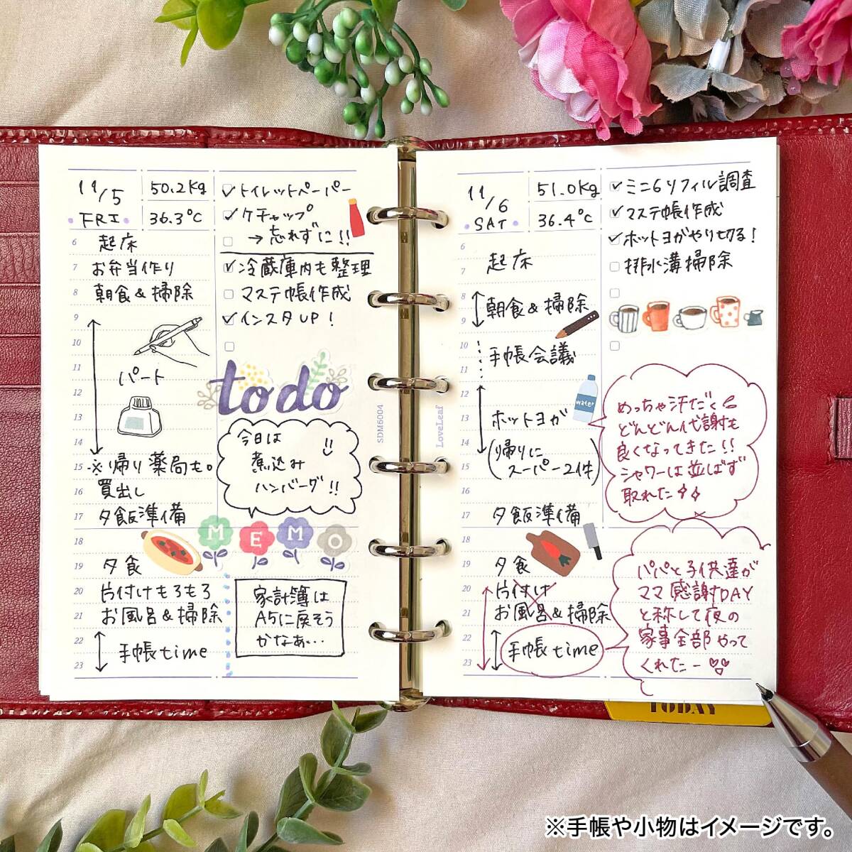 1日のスケジュールや短い日記、ToDoが書きやすく、目にやさしいクリーム上質紙で可愛くアレンジがきます。