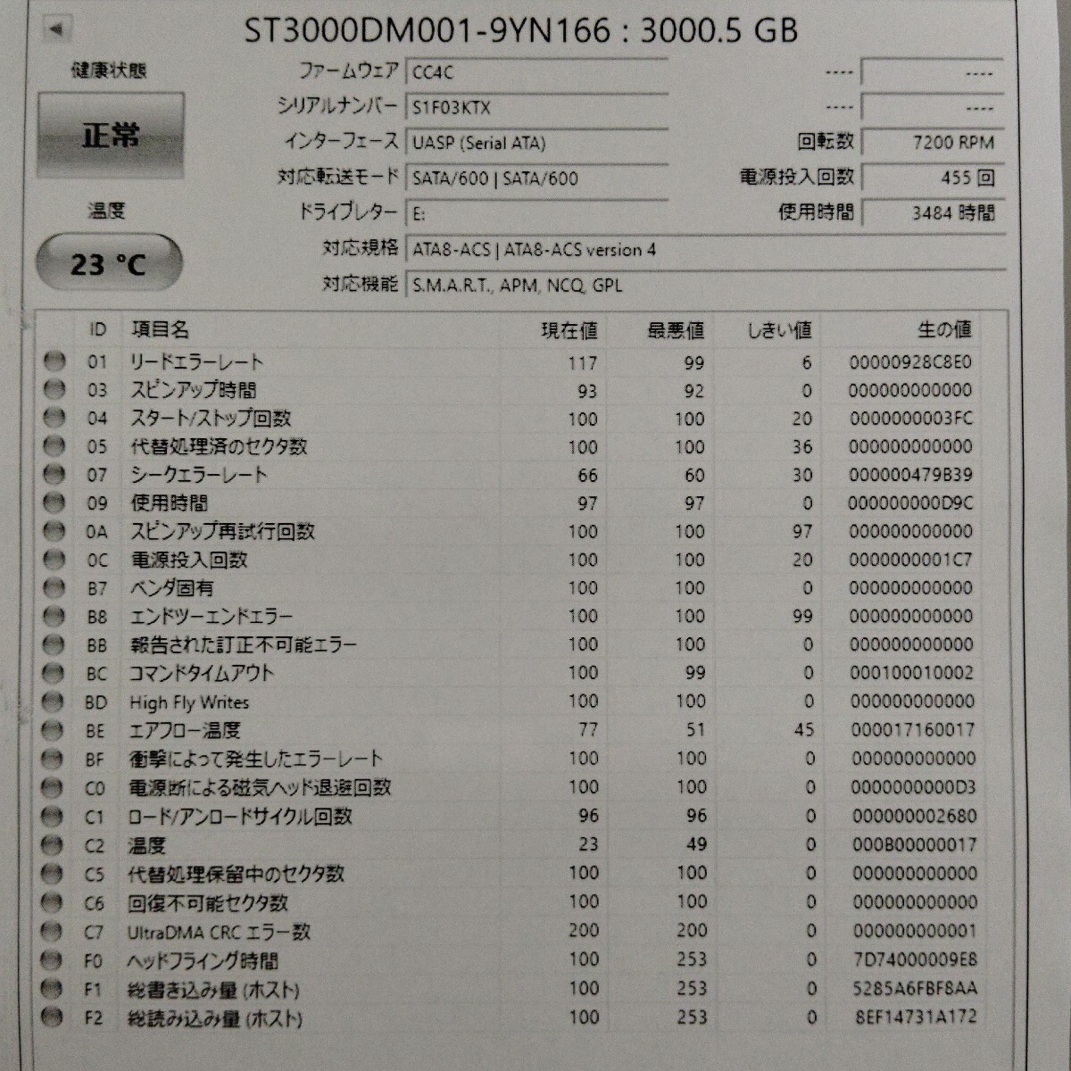 HDD 3TB Seagate BarraCuda ST3000DM001-9YN166 ハードディスク 正常 #067