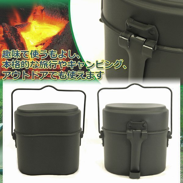 軍用 弁当 飯盒 軍飯ごう セット キャンプ用 アウトドア水筒 飯盒 はんごう 非常用 サバゲー BBQ ミリタリーアイテム 取っ手 レトロ 軍モノ