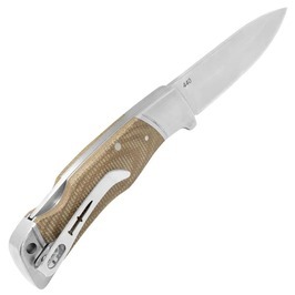 ブレードは、440ステンレス鋼にチタンを結合させた素材を使用していることでエッジの鋭さ、耐久性、耐食性のバランスがとれた仕上がりに。鋭いエッジを長く保持でき長期にわたって使用可能。
