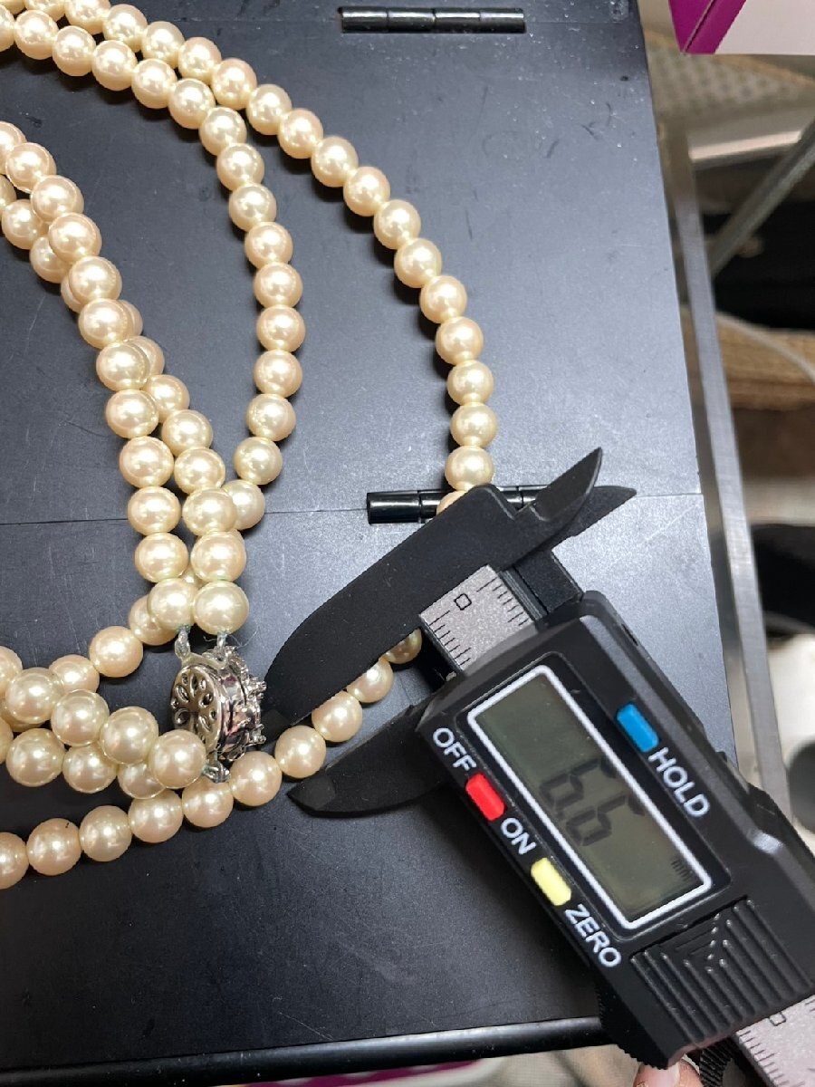 ・パールのサイズは全て測っておりません。写真8,9枚目はランダムに測っております。おおよその目安とお考え下さい。
