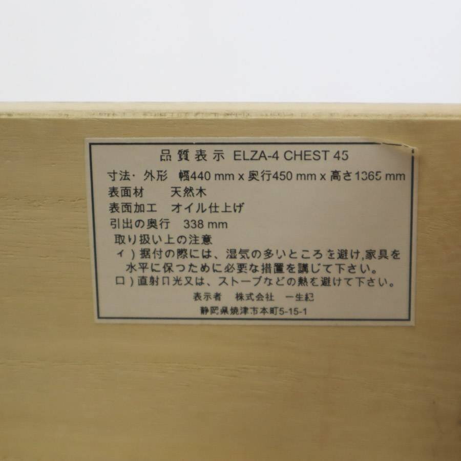 ISSEIKI 一生紀 ELZA エルザ チェスト 4段 45 アルダー材無垢 スリムチェスト○254h07