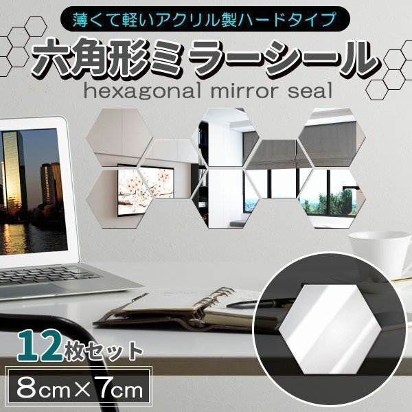 ★ミラーシール 鏡シール ウォールミラー 割れない鏡 カット可 12枚セット六角形 貼る鏡 粘着タイプ どこでもミラー 8cm