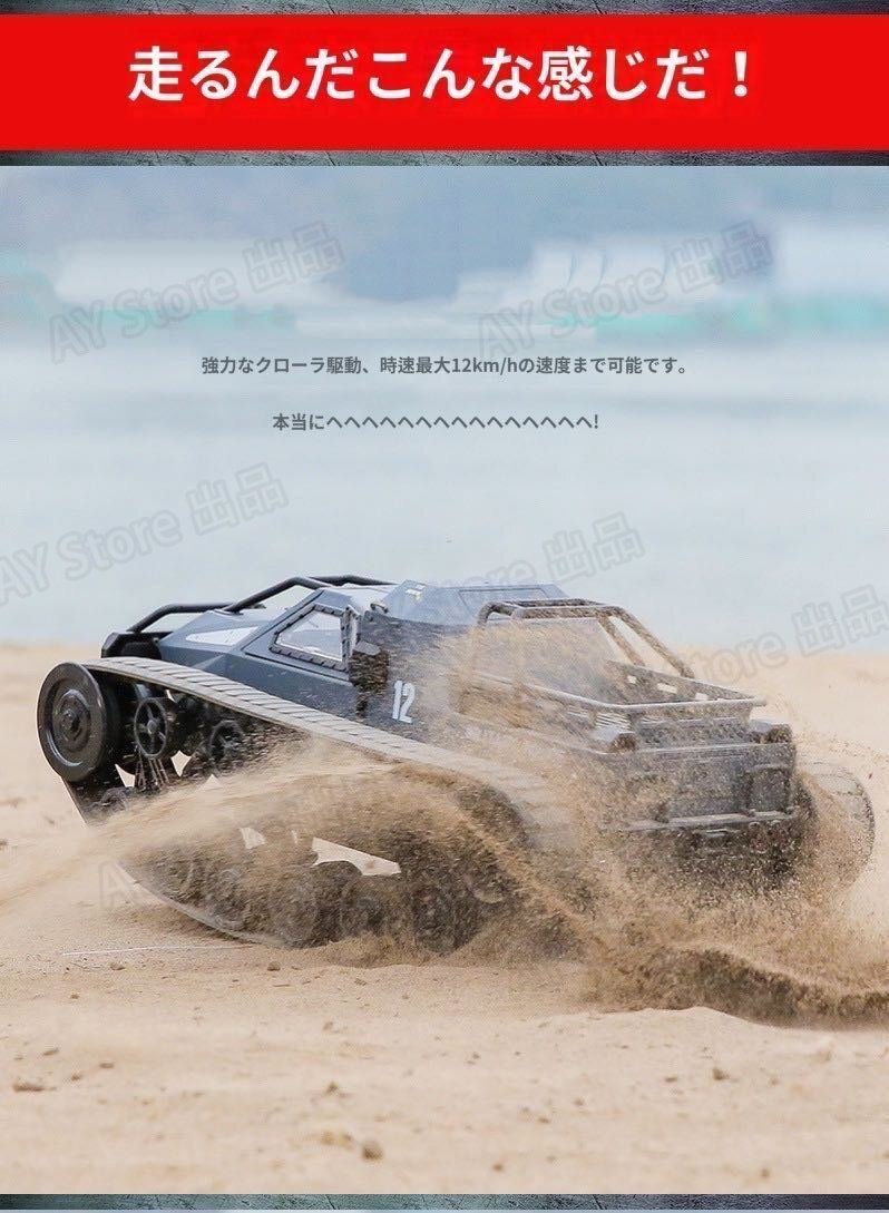 ★JJRC社 D843M RIPSAW EV2を完全再現!スタイリッシュ タンク RC 迫力 のキャタピラで超えられない障害なし!オリジナルはIPX4防水ですが、当社は車台本体を改良して完全防水を処理しており、バッテリー、基盤と受信機などメカ部も防水するようなになっているので、完全に水に浸入走行出来る防水標準、水遊び心配ありません。
