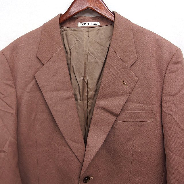 ムッシュニコル monsieur NICOLE パンツスーツ テーラードジャケット シングル スラックス タック 無地 ウール S ライトブラウン 薄茶 /FT10 メンズ