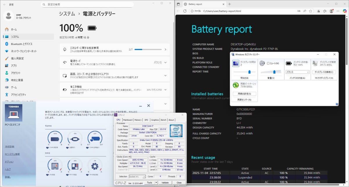 【製品仕様】 ■メーカー/型式 東芝 dynabook T7 ■OS Windows11 Home 64bit Windows11をクリーンインストールし、最新バージョン25H2へ更新済み! 安心してお使いいただけますよ。 厳選した必要最小限のアプリのみインストールしておりますので、 余計なアプリもなく快適なパフォーマンス!お好きなように自由に カスタムしてお使いください。 ■CPU 高性能 第8世代 Kady Lake R Core i7-8565U(1.80GHz) (インテル ターボ・ブースト・テクノロジー2.0対応:最大4.60GHz)) 4コア/8スレッド(インテル ハイパースレッディング・テクノロジー対応) インテル スマート・キャッシュ 8MB!! ■メモリ DDR4 最大値の大容量16GB 高性能DDR4仕様。安心のメジャーチップ製品を搭載。 ■ストレージ 大容量 新品NVMe SSD 512GB 通常のSSDよりも数倍も速い超高速NVMe SSDを安心の新品で搭載! 起動やシャットダウンも高速でノンストレス!とにかく速い!! 他にも、衝撃に強く発熱も低い、軽くて静かで省エネとメリットがたくさん。 ◇即決価格で落札いただいた場合、さらに大容量1TB HDD(良品)を追加してデュアルストレージ仕様にてお届け!◇ 合計1.5TBになるので、容量不足の心配は皆無です。思う存分保存できます。 ■液晶 15.6型ワイド FHD広視野角 Clear SuperView液晶 (IPS方式、省電力LEDバックライト) 発色も美しく、明るく、解像度がフルHD(1,920×1,080ドット)なので超鮮明!! ■ドライブ ブルーレイドライブ(DVDスーパーマルチドライブ機能対応) ソフトもインストール済みなので、ブルーレイ、DVD、CDがすぐに視聴できます。 ■LAN 1000Base-T対応 高速ギガビット対応 ■無線LAN IEEE802.11a/b/g/n/ac準拠、Wi-Fi準拠 11ACに対応しているので、高速通信が可能です。 ■Bluetooth ワイヤレステクノロジー Ver5.0 マウスなどBluetooth対応機器と煩わしい配線レスで接続可能! ■インターフェース USB3.0×3 USB Type-Cコネクタ×1 HDMI端子(4K出力対応) USB3.0はもちろん、高速データ通信を実現するUSB Type-Cコネクタも搭載! ポート数も十分で周辺機器との拡張性も余裕! ■顔認証センサー搭載 サインインやログインにも便利でセキュリティ面でも安心! ■WEBカメラ搭載 Zoomに欠かせません。動作も良好! ■SDカードスロット搭載 SD、SDHC、SDXC、マルチメディアカード対応 ■付属品 ACアダプタ 【動作確認】 ◇キーボードの全キー入力、サウンド、LAN/無線LANでのネット接続、 ドライブの読み込み/書き込み等(ブルーレイは読み込みのみ確認)、WEBカメラ、 各インターフェースの動作確認済みです。 【状態】 若干擦れなど小キズが見られる程度で、綺麗な部類の状態です。 ◇この機種はバッテリー不良のものが非常に多いですが、正常動作バッテリーを搭載しており安心です。バッテリー駆動も可能!(ただし、消耗品のため保証につきましては対象外とさせていただきます。 ACアダプタでのご使用を前提としておりますので、予めご了承ください。 |