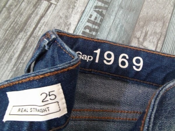 サイズは25で、ウエスト72cm、股上23cm、股下59cm です。
