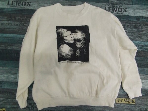 レディース モノクロフォト転写プリント 裏起毛トレーナー 白 です。