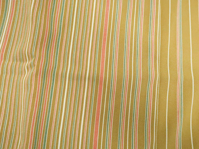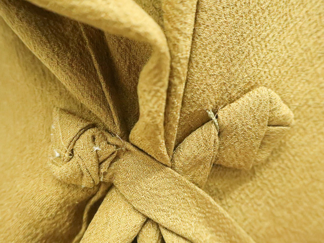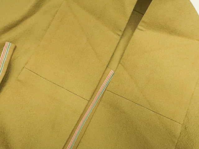 リサイクル商品のため、所々しみ汚れがございますが着用可能なお品です。 地色は辛子です。 1枚目の画像が近いお色かと思われます。 素材は化繊です。 |