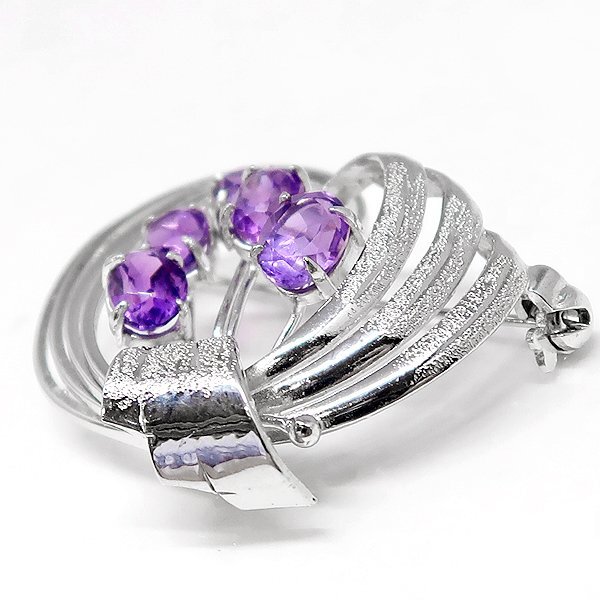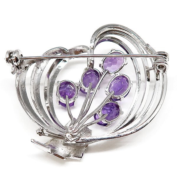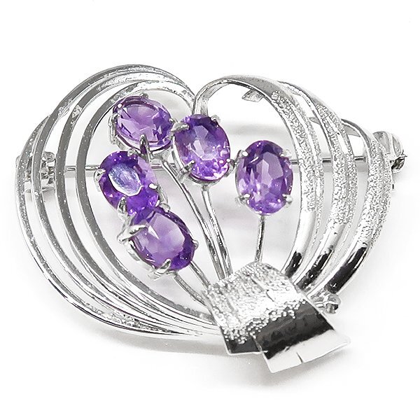 DKG★送料無料 BVA694★ 天然石 アメジスト フラワー ブローチ 紫水晶 フラワーブローチ