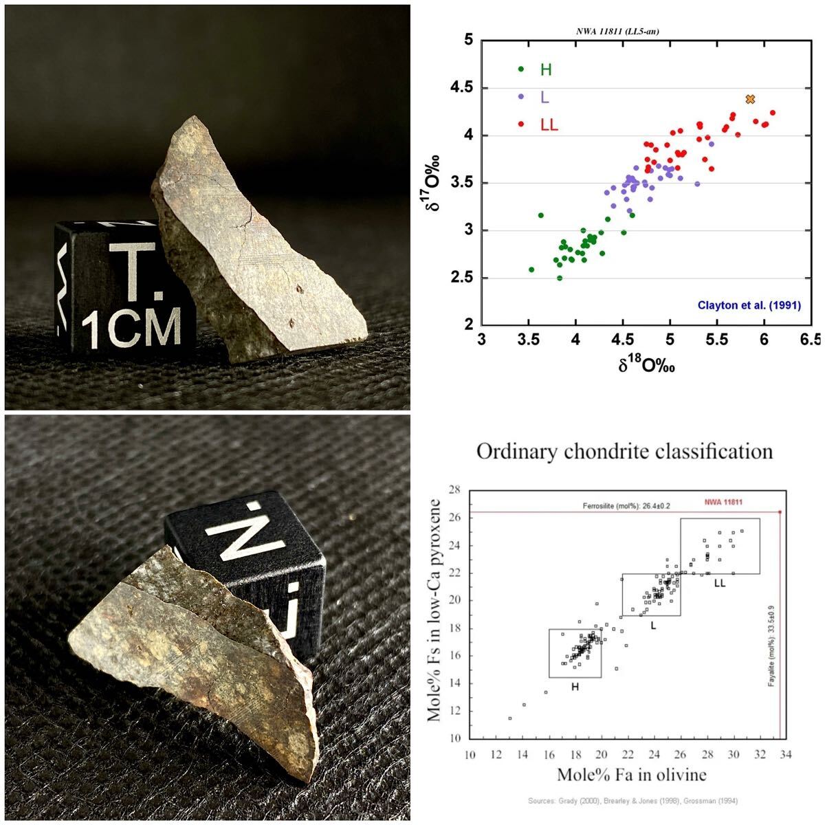 しかし酸素同位体組成を決定する分析にて、この高いグループの値により、最後の分析ではNWA11811がLL型にグループ化されました。(画像9枚目右側資料)