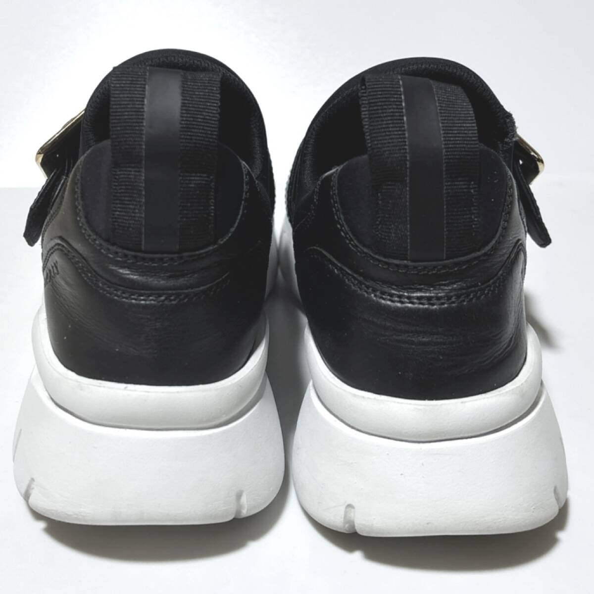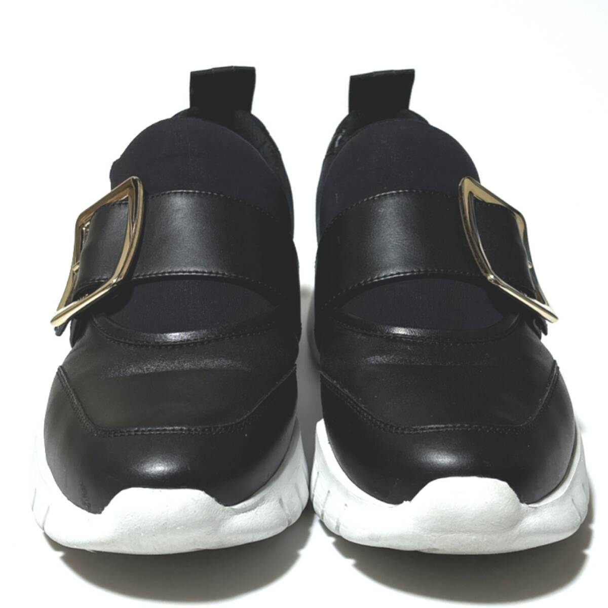 ゴールドトーンのJANELLEバックルをあしらったフロントバンドがラグジュアリー感を漂わせるラムレザースニーカーです♪