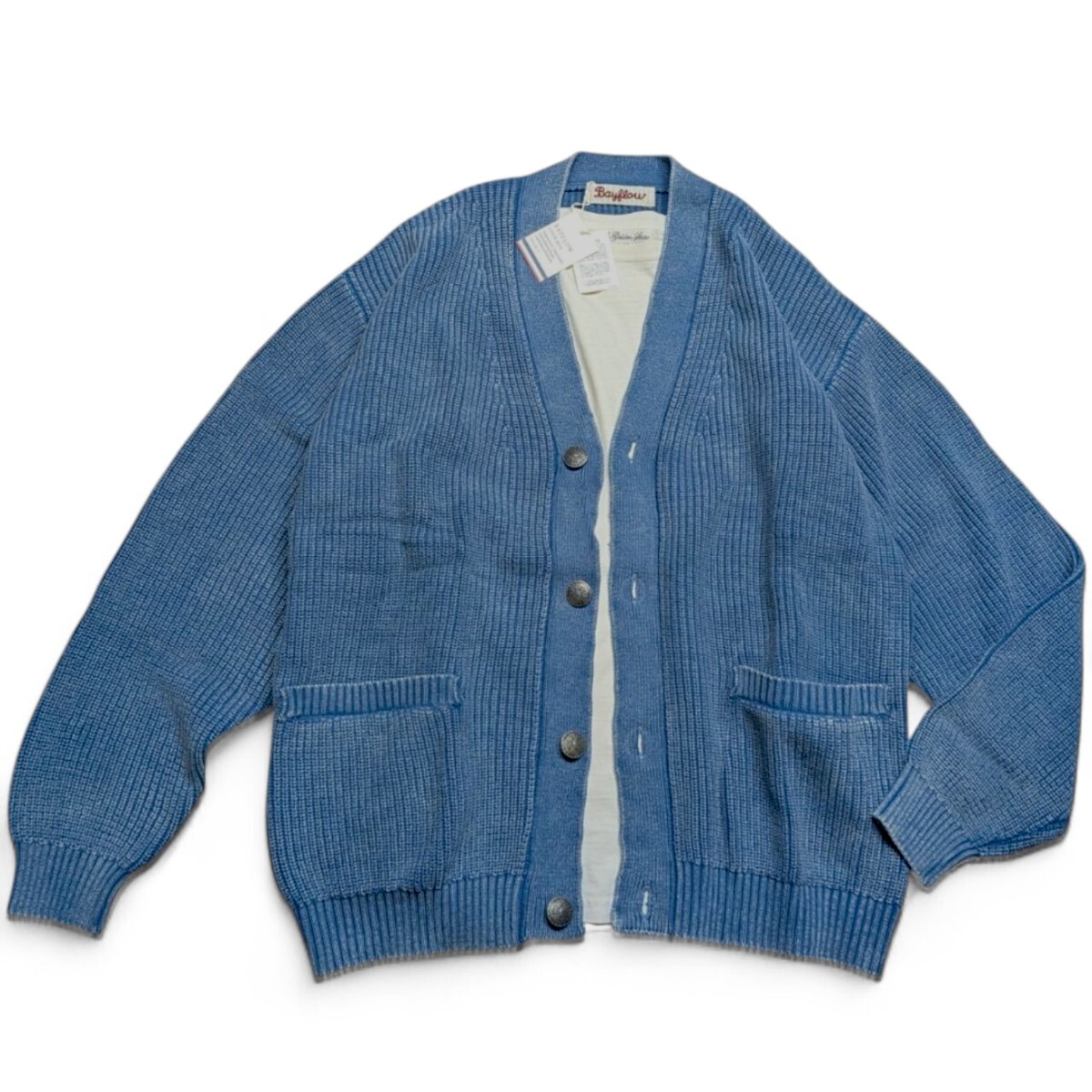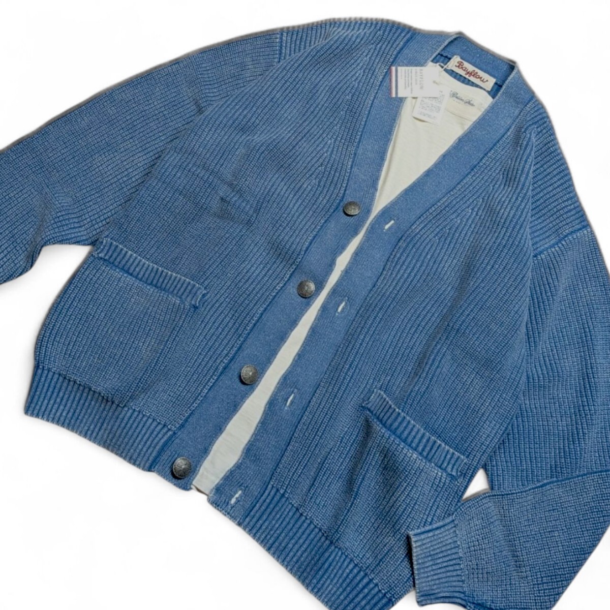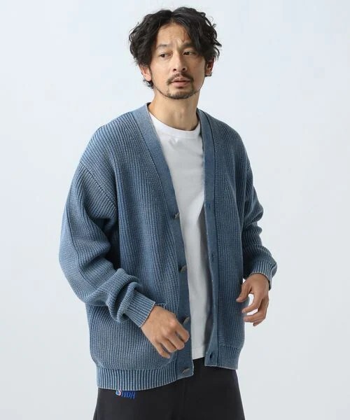 ★コットン糸で編まれた味だしニットカーディガンです。フェード加工の表情が出やすい凹凸感のある、あぜ編みニット。