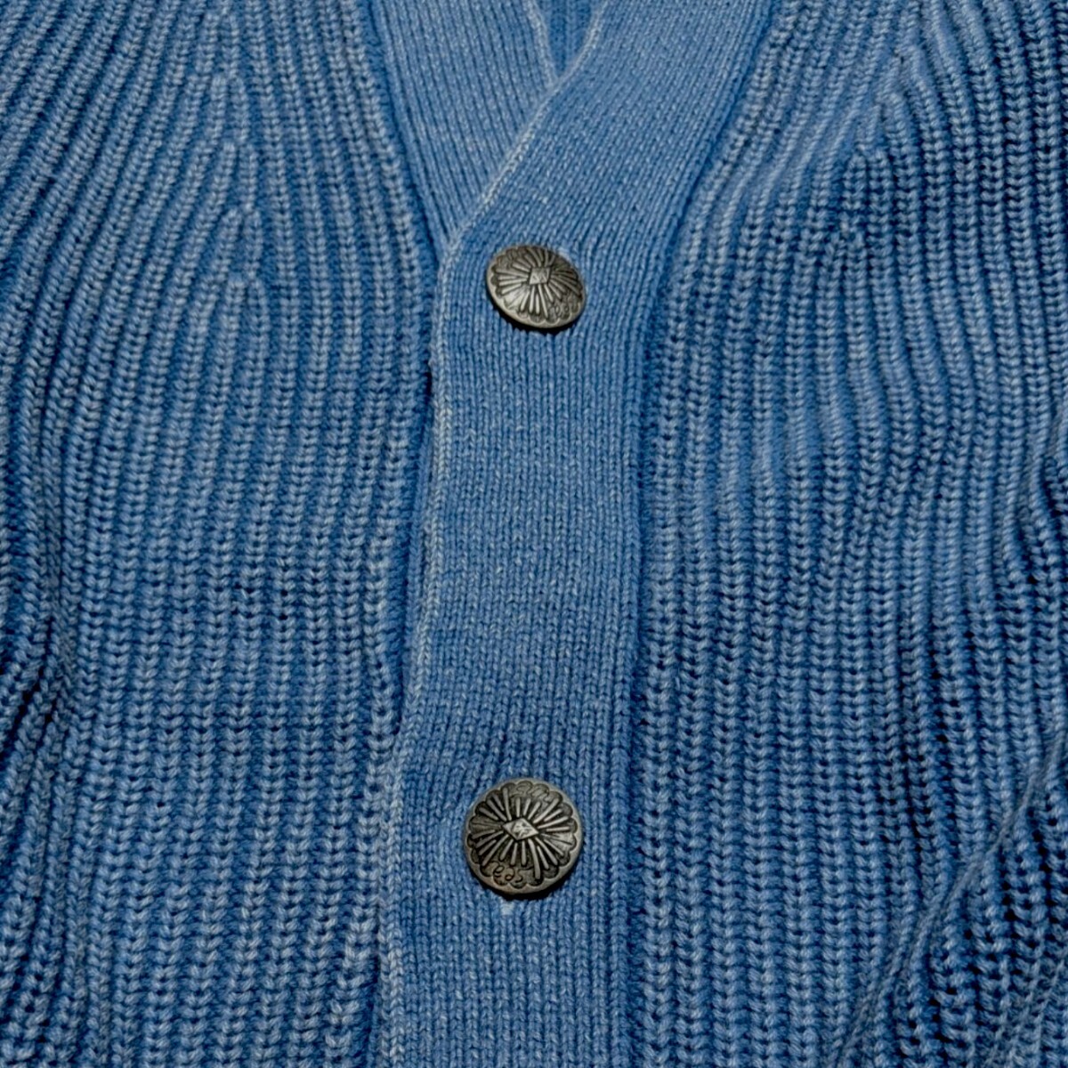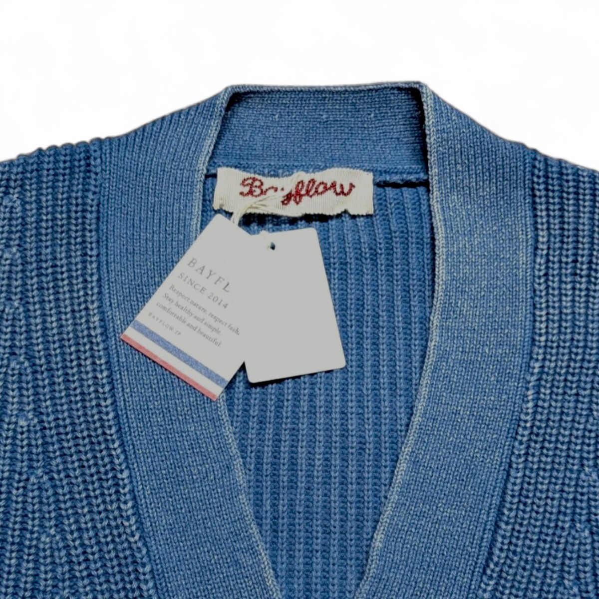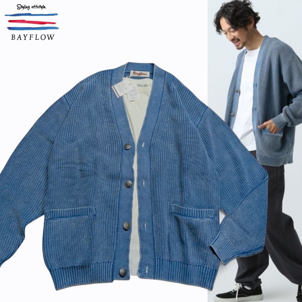 ★コットン糸で編まれた味だしニットカーディガンです。フェード加工の表情が出やすい凹凸感のある、あぜ編みニット。