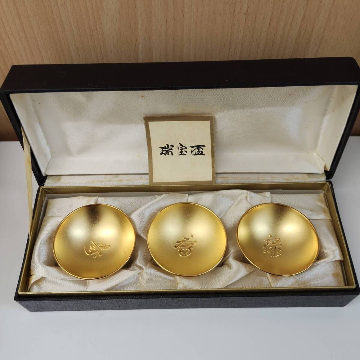 【TM1030】金杯 24KGP 3個 セット 箱付 まとめ 瑞宝盃 酒器 メッキ杯