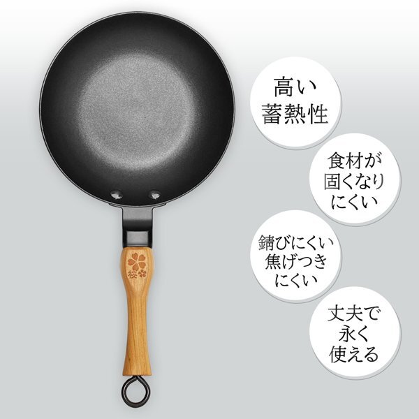 フライパン 鉄 日本製 20cm IH ガス火対応 木柄 直火 国産 鉄製 炒め鍋 鋳物 桜の木 鍋 プレゼント 送料無料- 80S◇ サクラパン:20cm