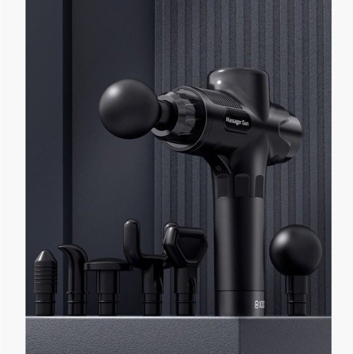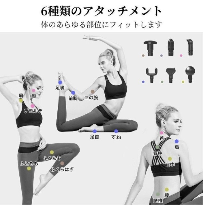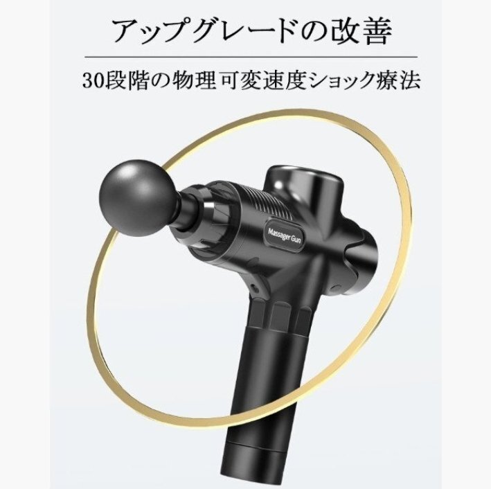 マッサージガン 筋膜リリース 首 肩 電動 小型 30段階調節 6種類ヘッド 軽量 父の日 敬老の日 プレゼント ブラック