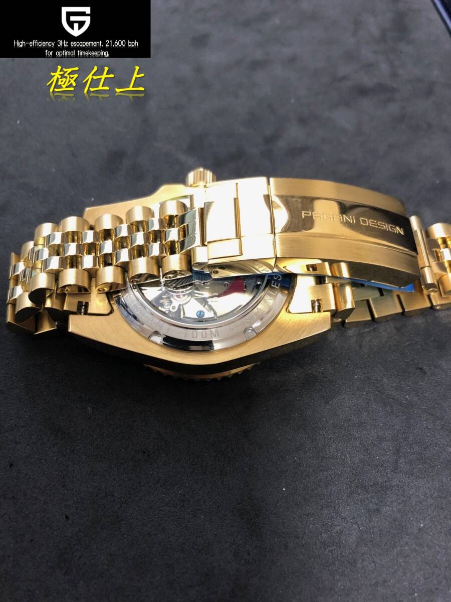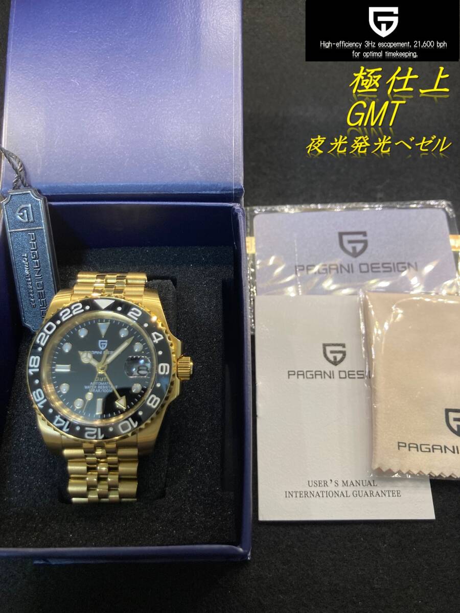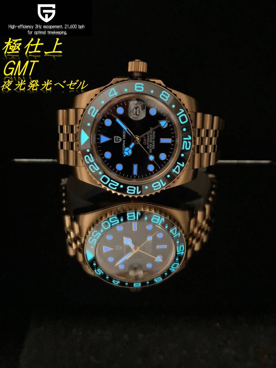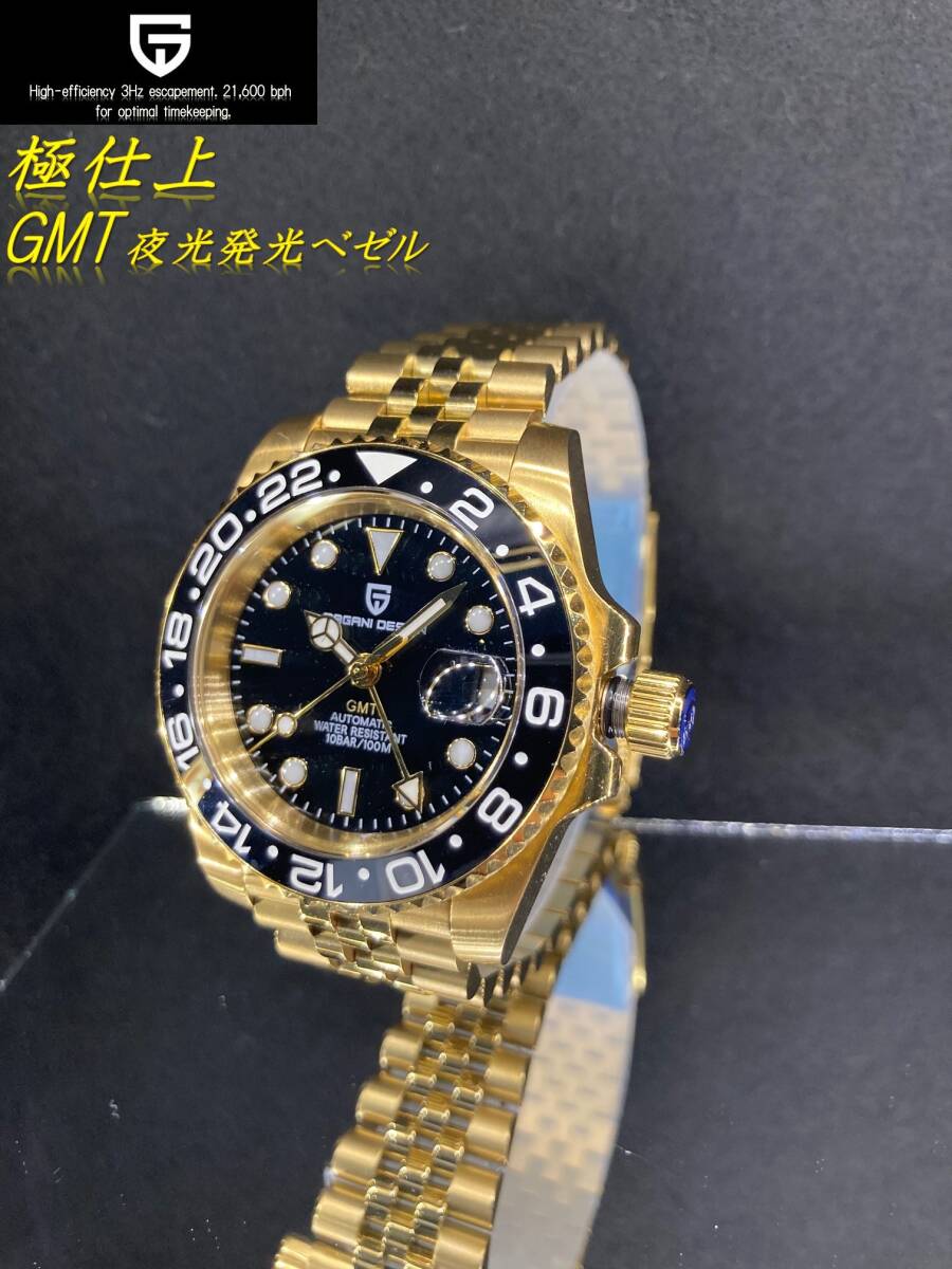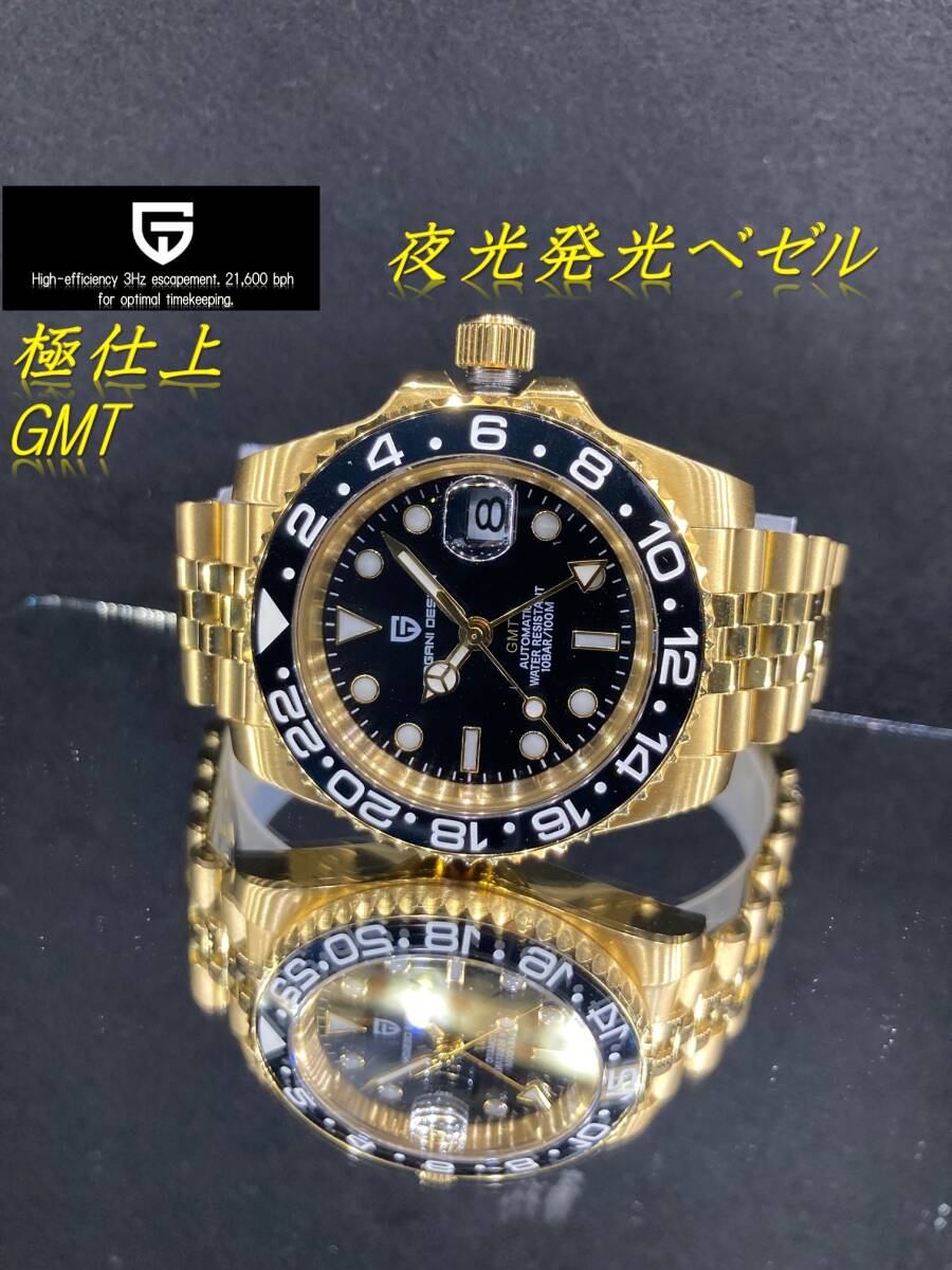 ■極仕上/調整済/10日保証付/新品に極めて近い1回使用USED/中古品(GMTマスターⅡオマージュ)(機械式時計)BKゴールド/発光/21600振動