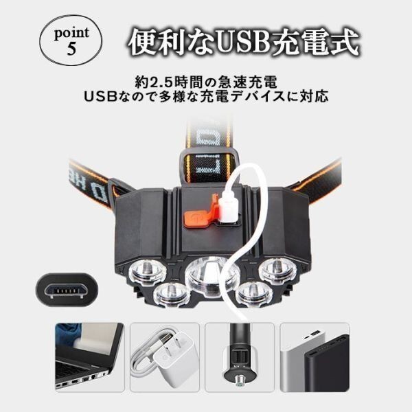 高輝度 頭ライト 防犯ライト 防災グッズ 充電式 角度調整
