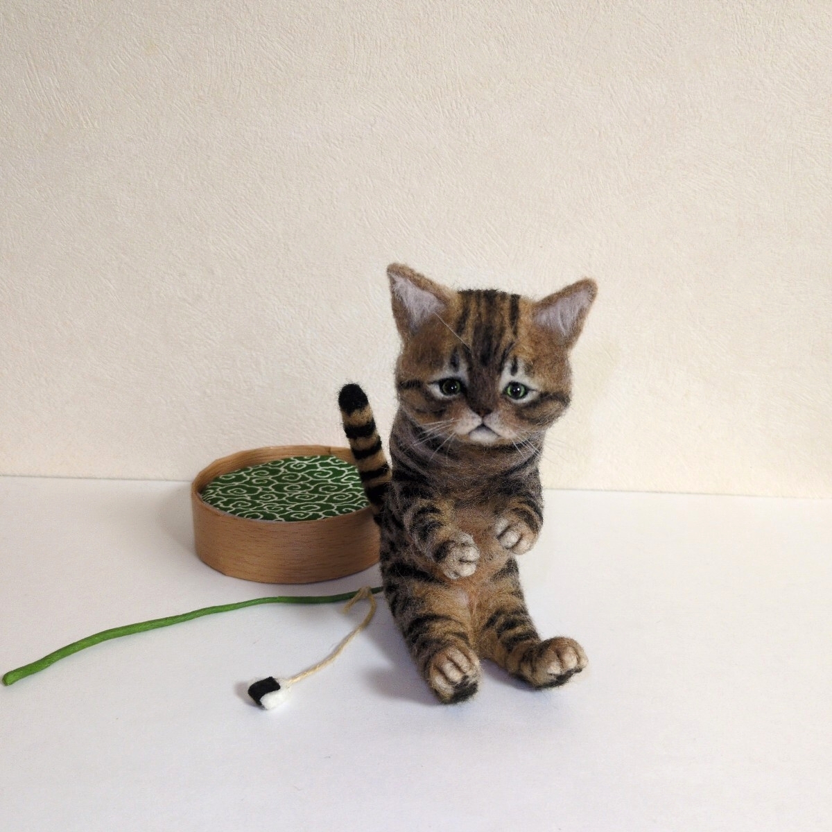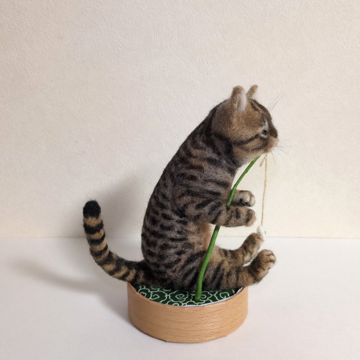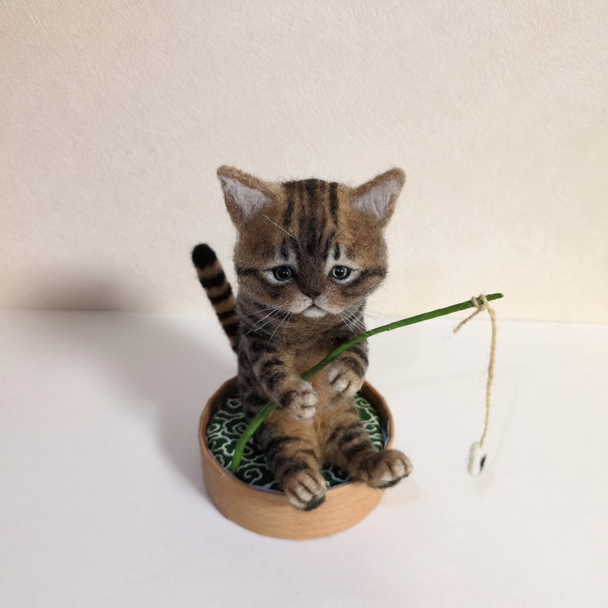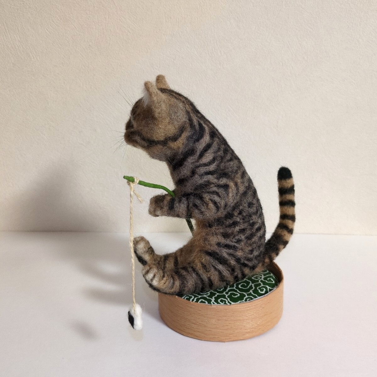 ◇羊毛フェルト等でつくりました「釣りをするネコ」(キジトラ)をイメージした作品です。