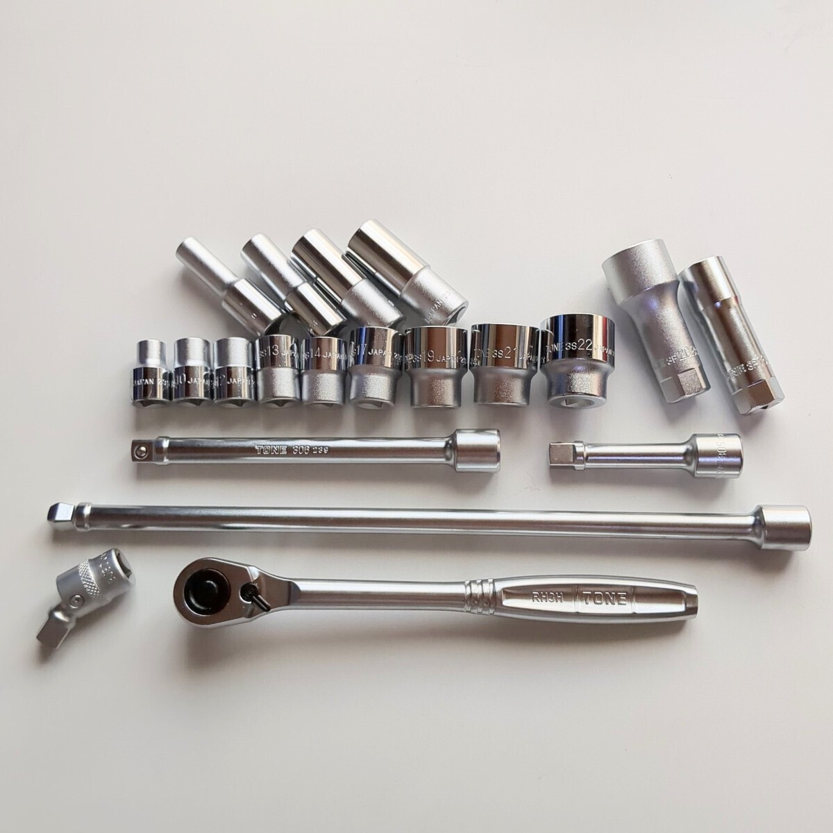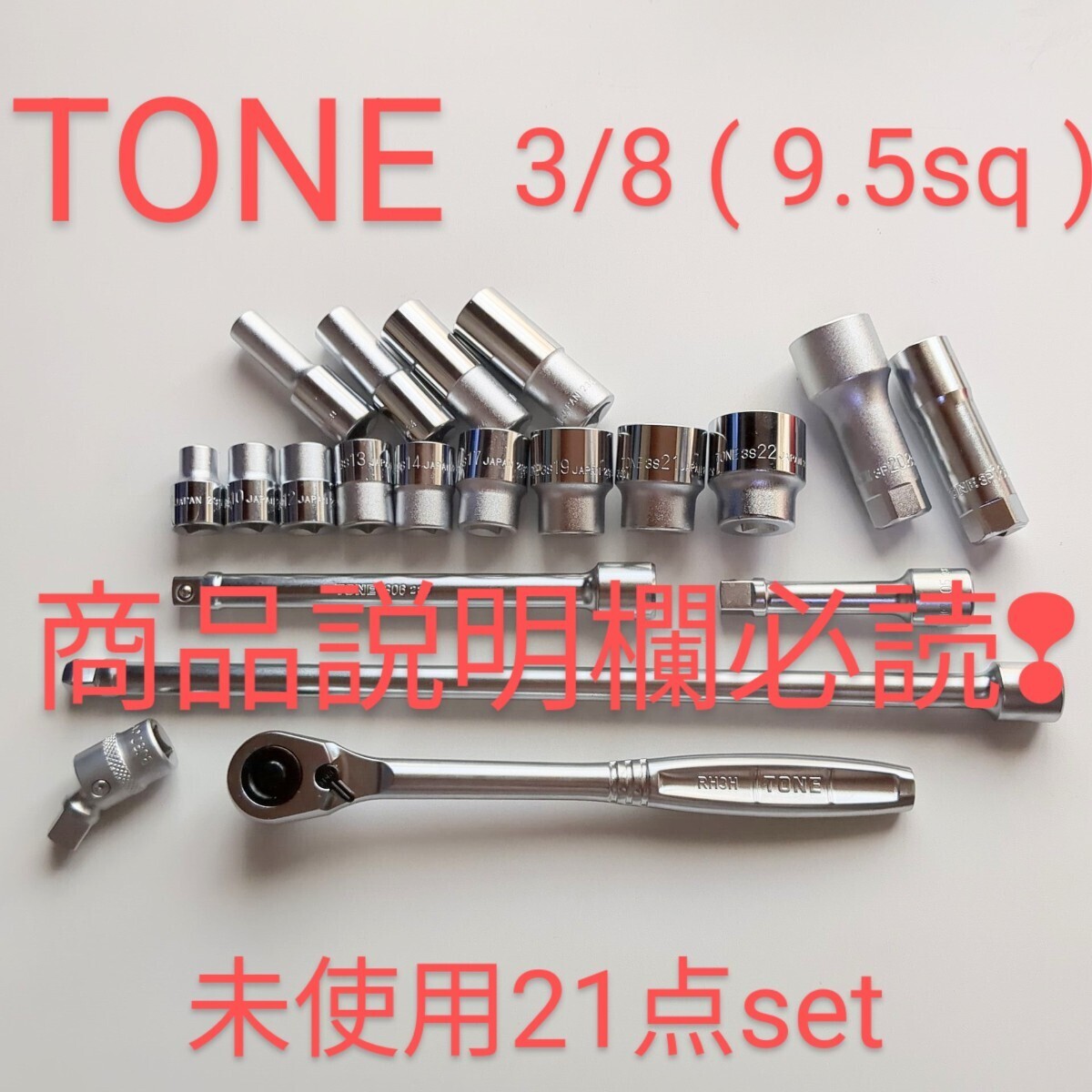 ◎ 3/8 ( 9.5sq ) サイズ ラチェットハンドル・ソケット プラグソケット付 等20点set 画像1・2枚目(同じ画像) 全てTONE製 他ブランドはありません