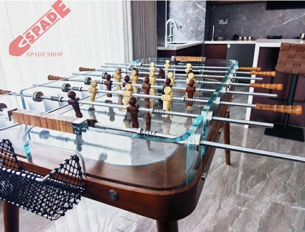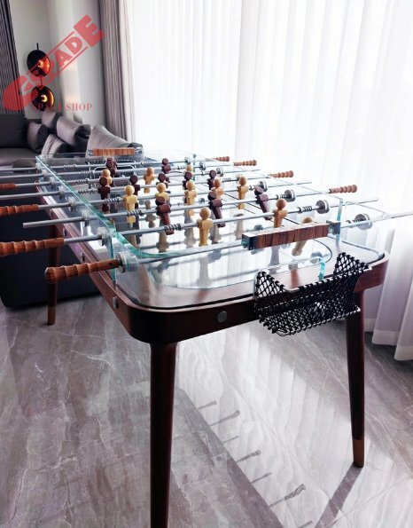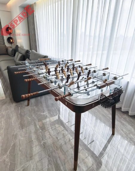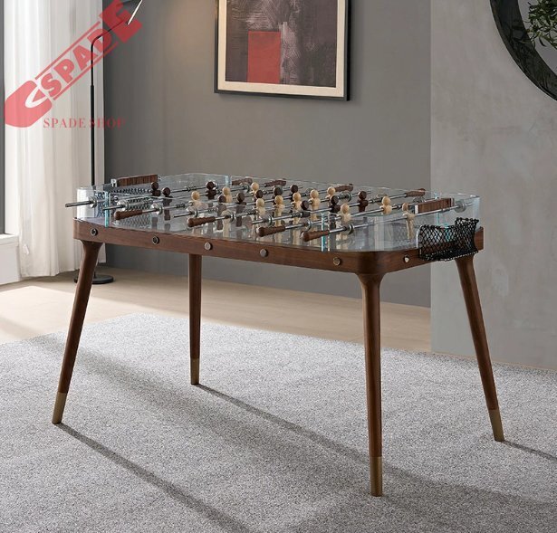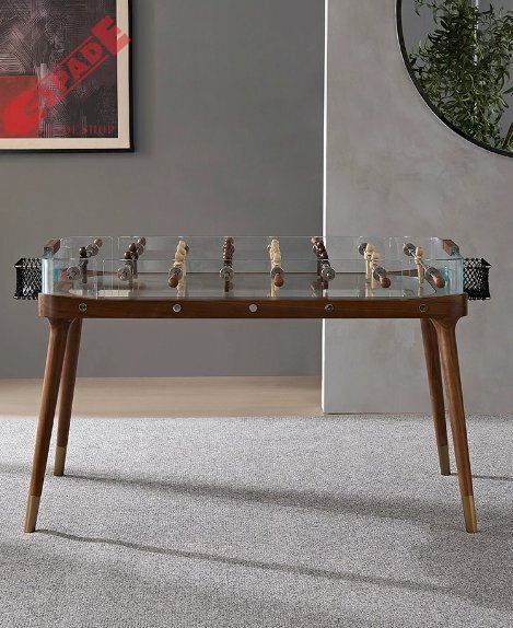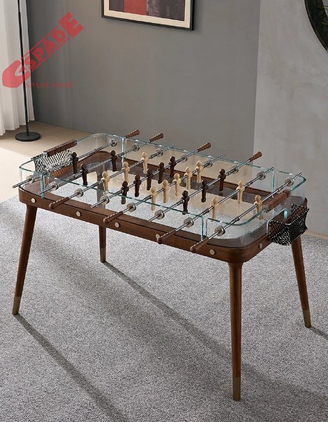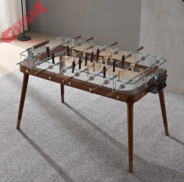 イタリアンラグジュアリー ブラックウォールナット無垢材 ガラス製サッカーテーブル 透明テーブルサッカー台 高級アミューズメントテーブル