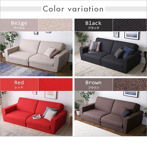 | 【カラー】 ベージュ、ブラック、ブラウン、レッド 【サイズ】 幅192x奥行き104~240x高さ50~75cm 【重量】 56kg 【素材】 構造部材:スチールパイプ クッション材:ウレタン、ポケットコイル 張地:ポリエステル100% 【梱包】2梱包でお届けします。 2-1 サイズ:100x51x105cm 2-2 サイズ:100x51x105cm 合計重量:60kg 【その他】 カバーは外して洗うことは出来ません。 【組み立て品】 お客様による組み立てが必要です。 【ご注意】 ・サイズ、重量は概算です。 ・商品カラーはご使用のモニターによって実際の明るさや色と異なって見える場合がございます。 |