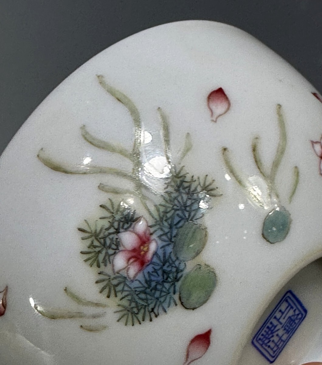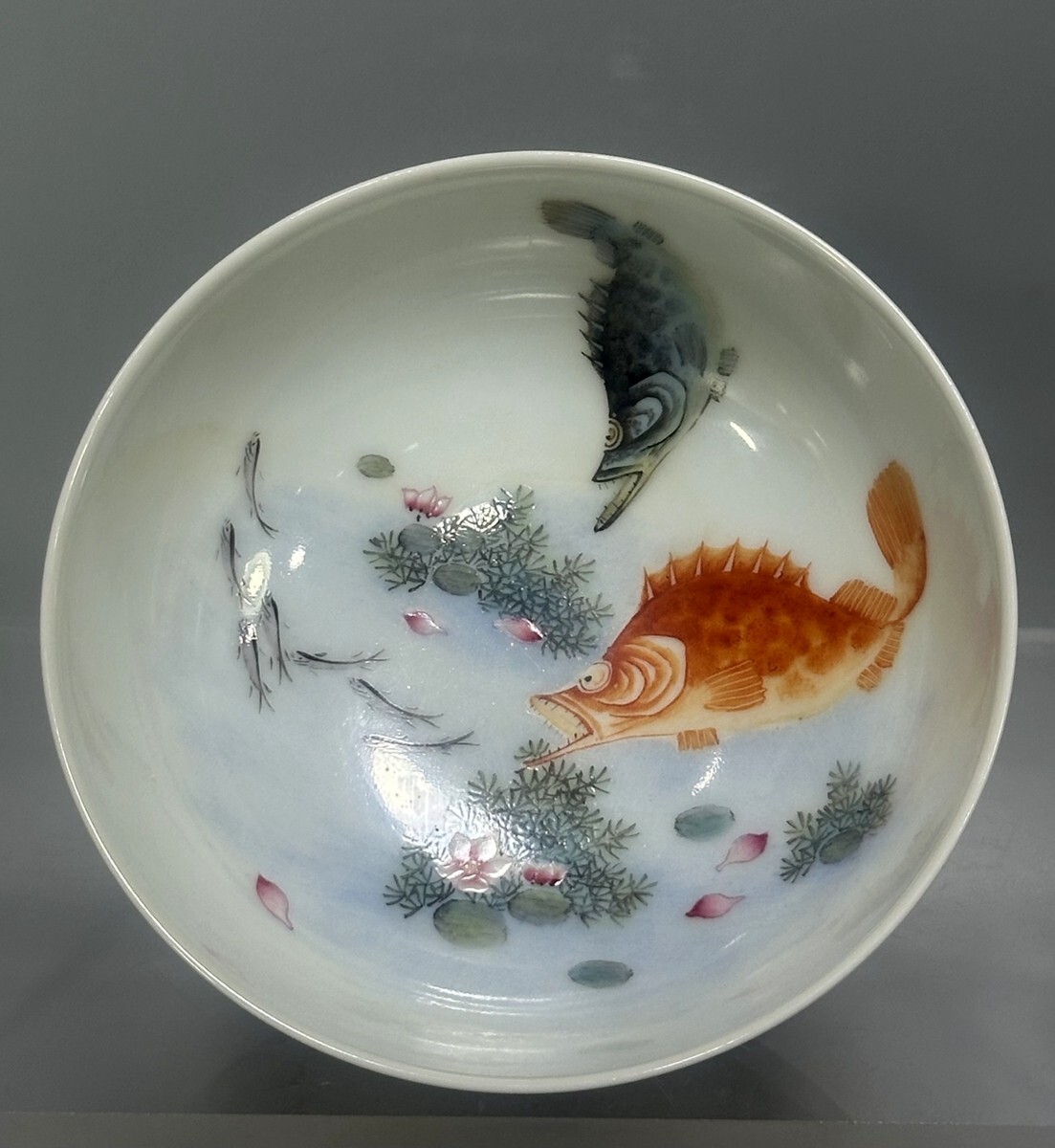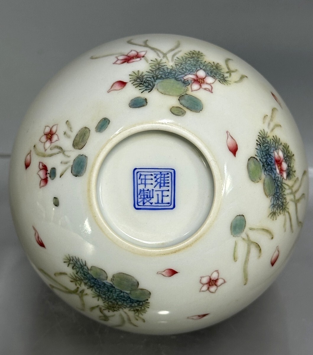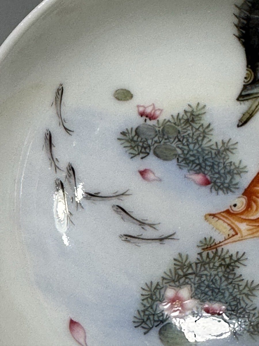 「清 雍正年製 陶磁器 琺瑯彩年年有魚紋 杯一対」染付 置物 擺件 古賞物 中国古美術 旧蔵出