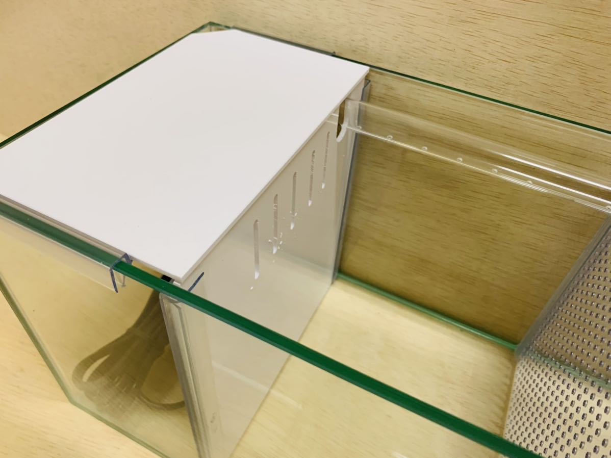 ・ご希望でしたら別途1,300円プラスで専用ガラス蓋470×185×3mm(水槽使用部分)と樹脂製蓋受け(4本)を別パーツとして出品しておりますのでご覧ください。